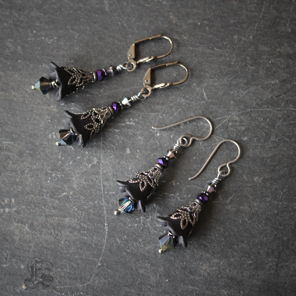 - Earrings measure 2" or 5cm long. They are available with either your choice of brass leverback ear wires or hypoallergenic niobium ear wires (see photos)