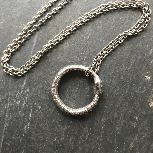 Ouroboros Snake Necklace in Pewter