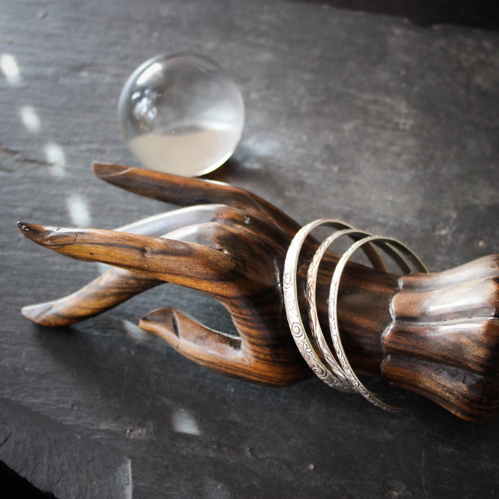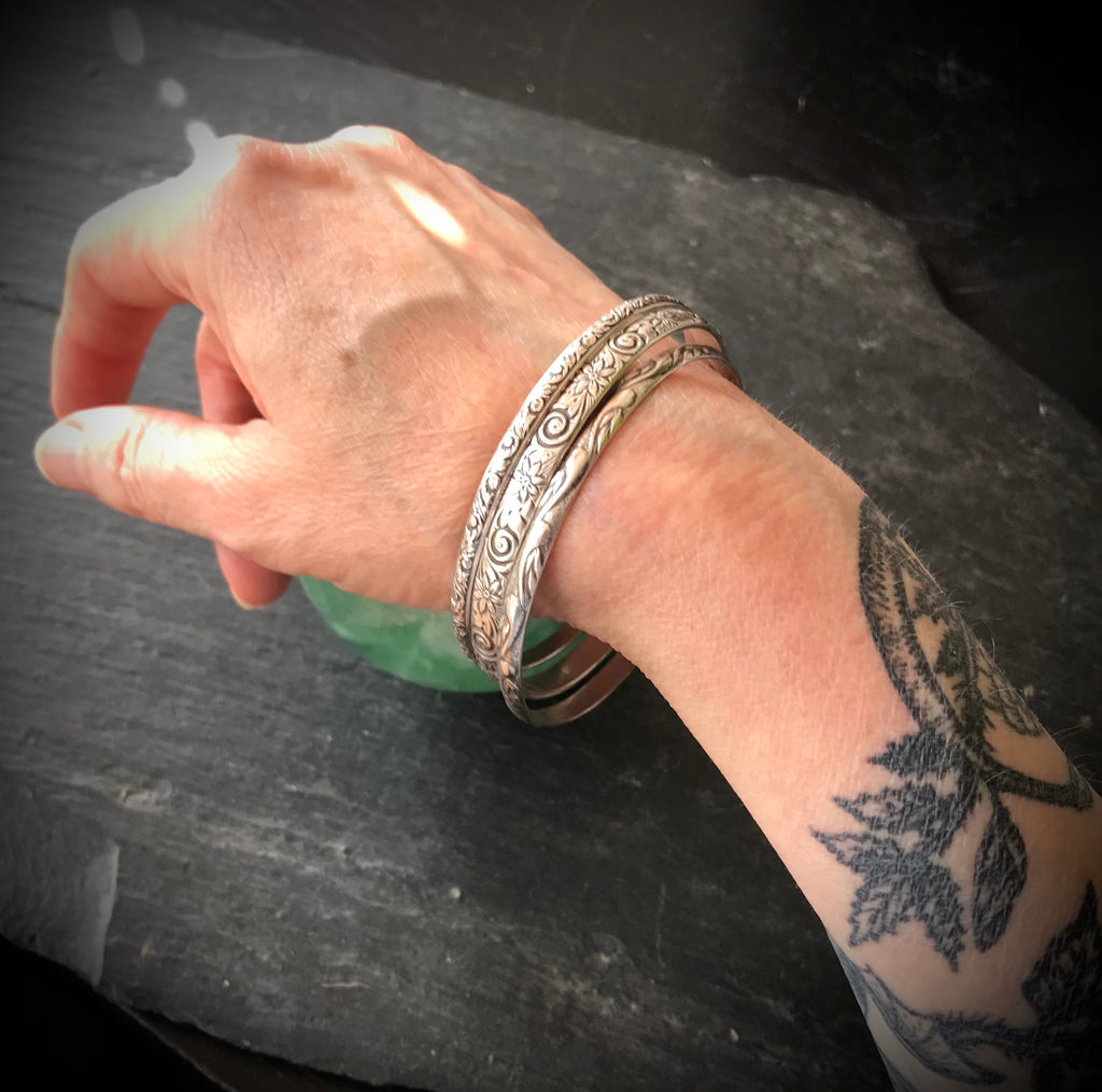 Vintage Patterned Solid Sterling Silver Bangles. Bracelet Set Small.