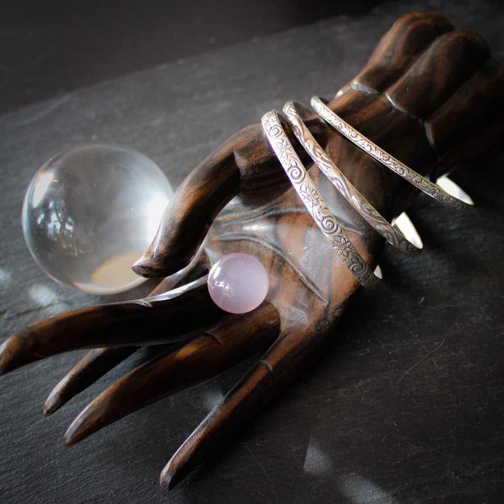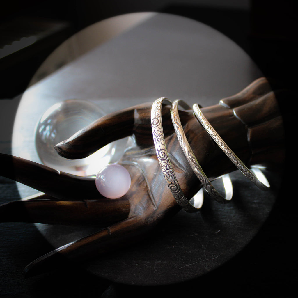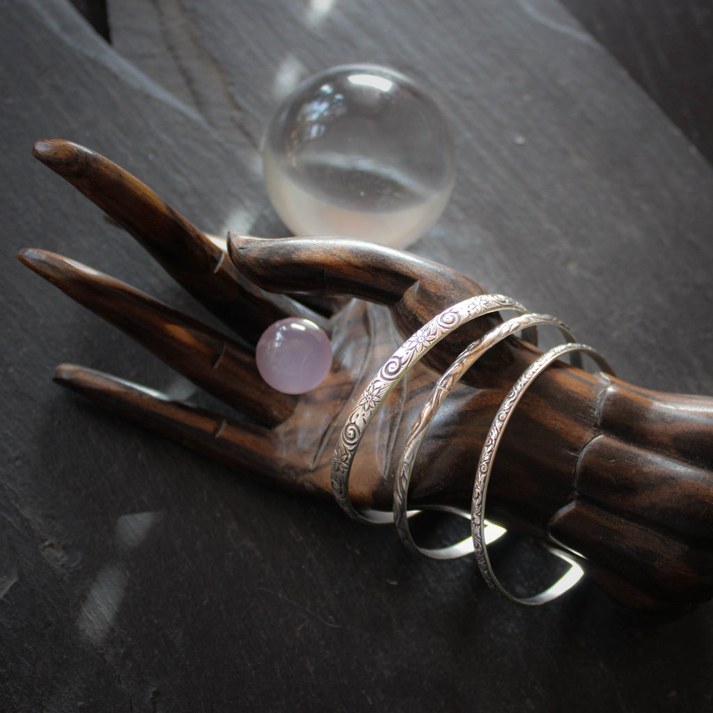 A trio of beautifully patterned sterling silver bangles in a small-medium size