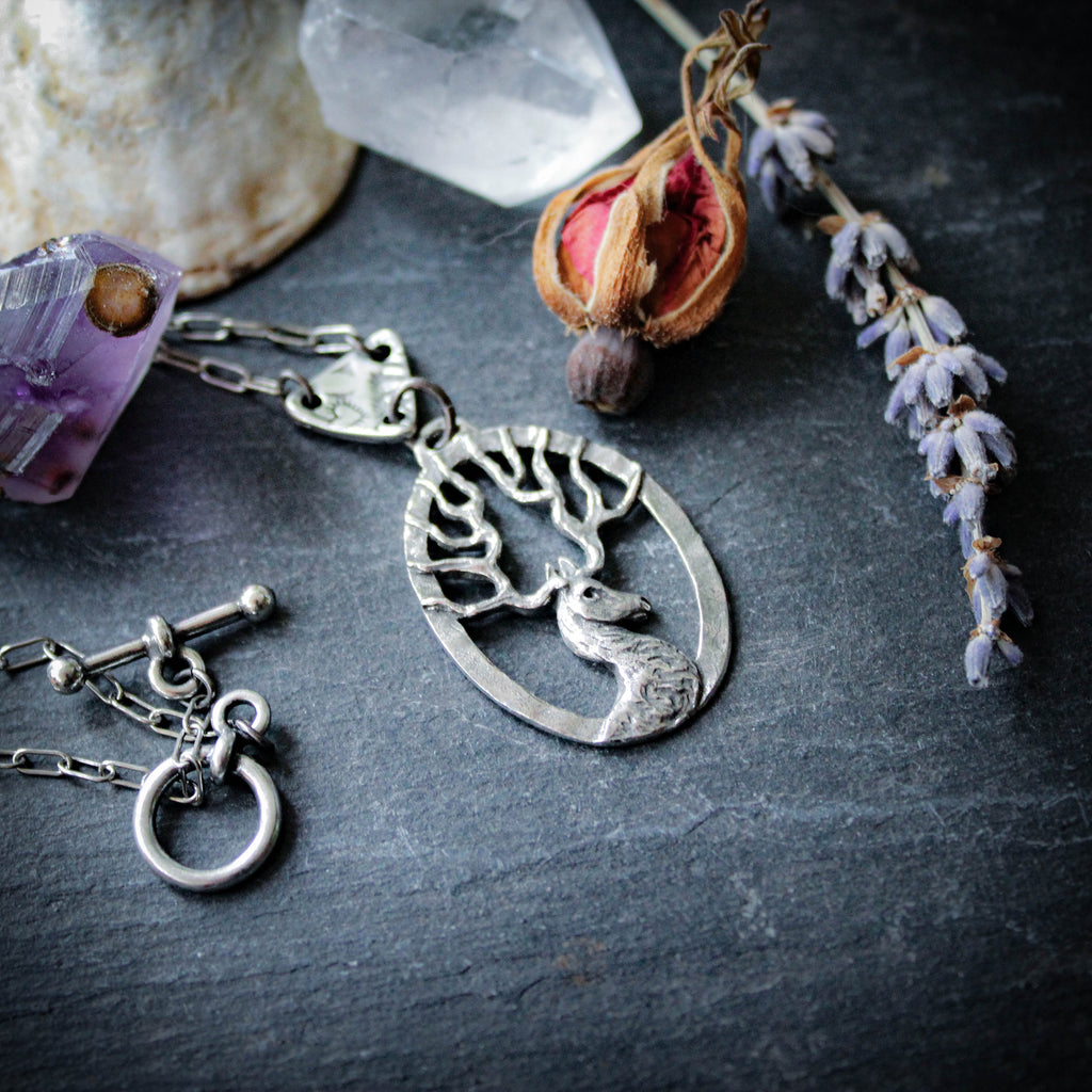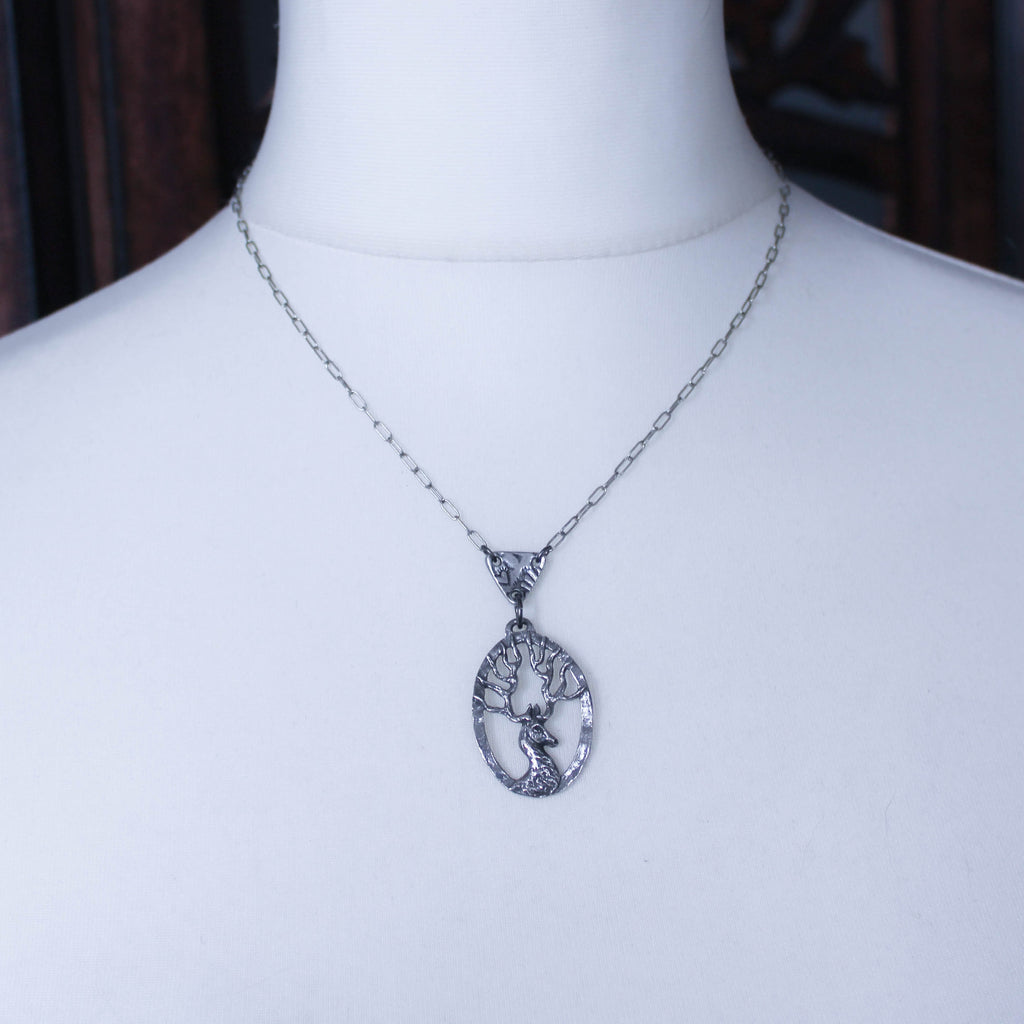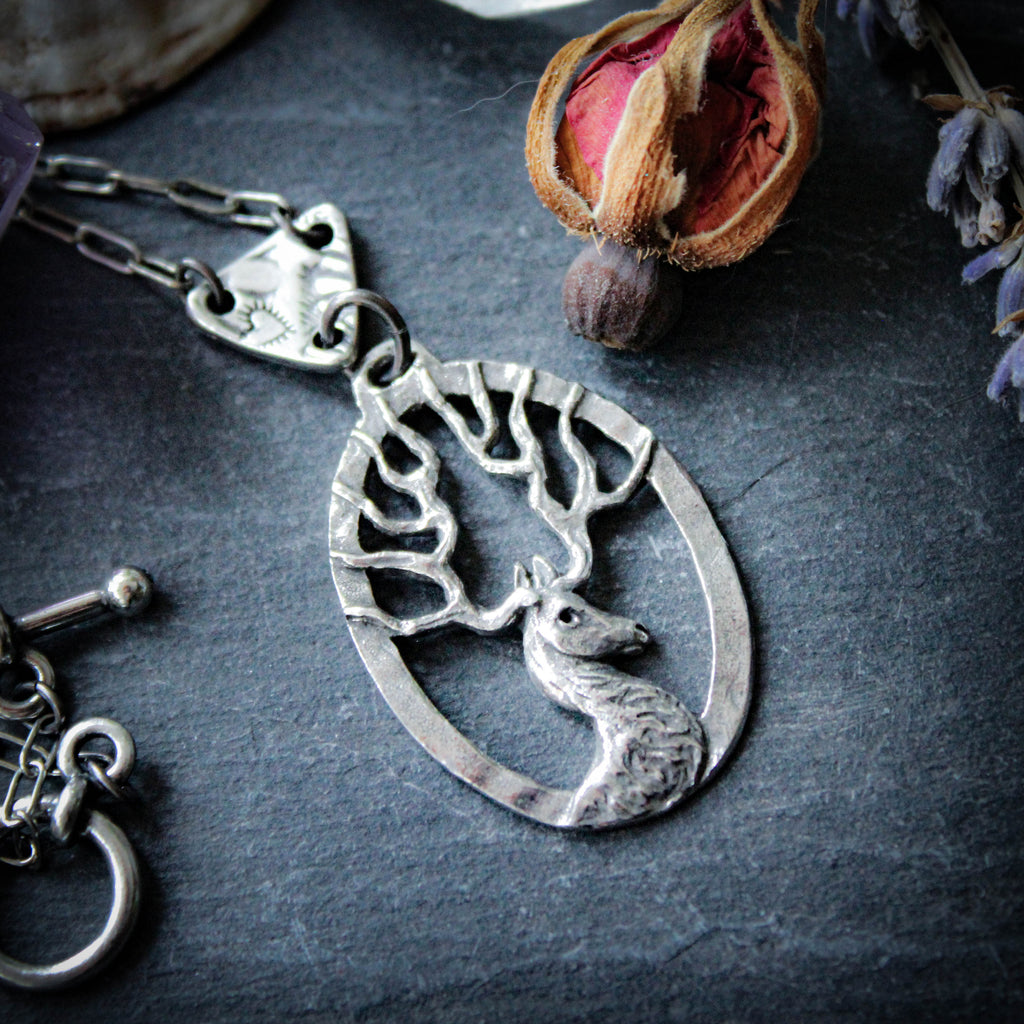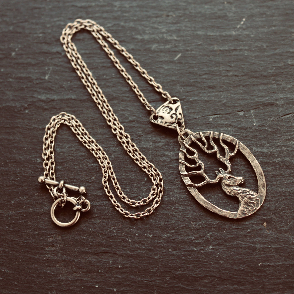 An unique Scottish stag pendant necklace, hand cast in lead free & nickel free pewter.