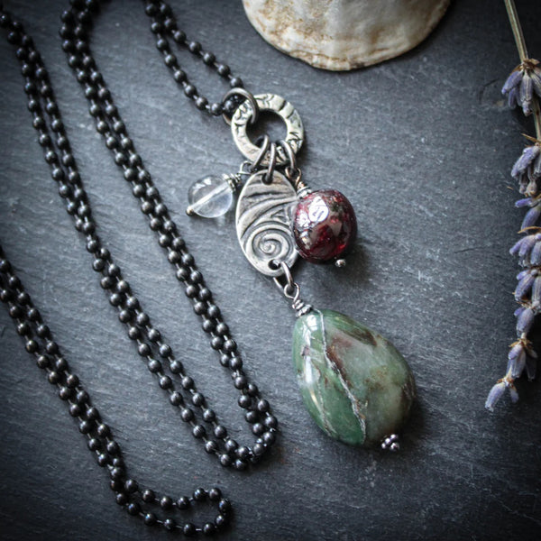Glasgow Rose Shawl Pin with Unakite Drop