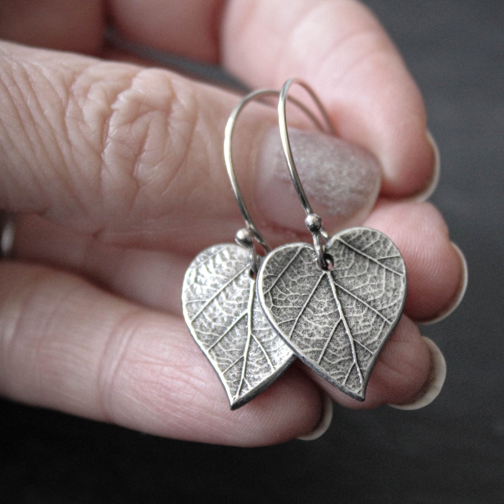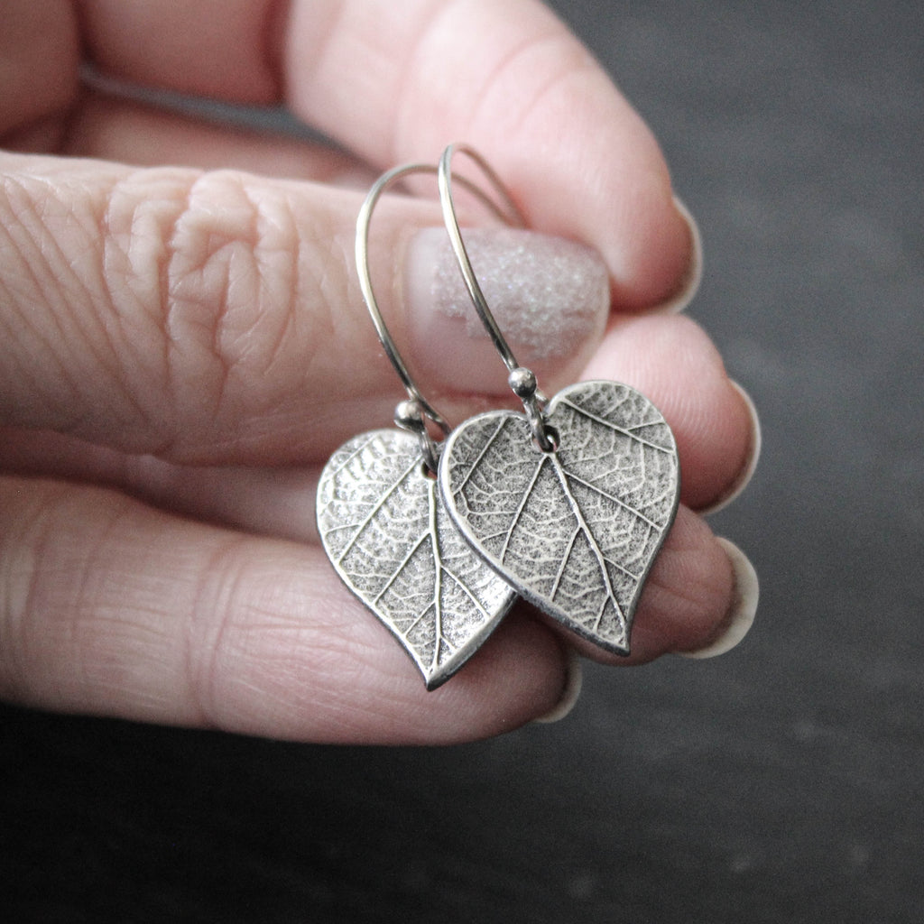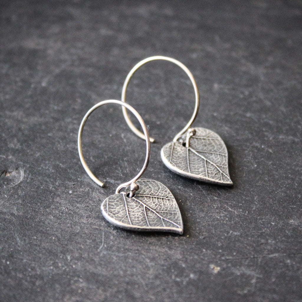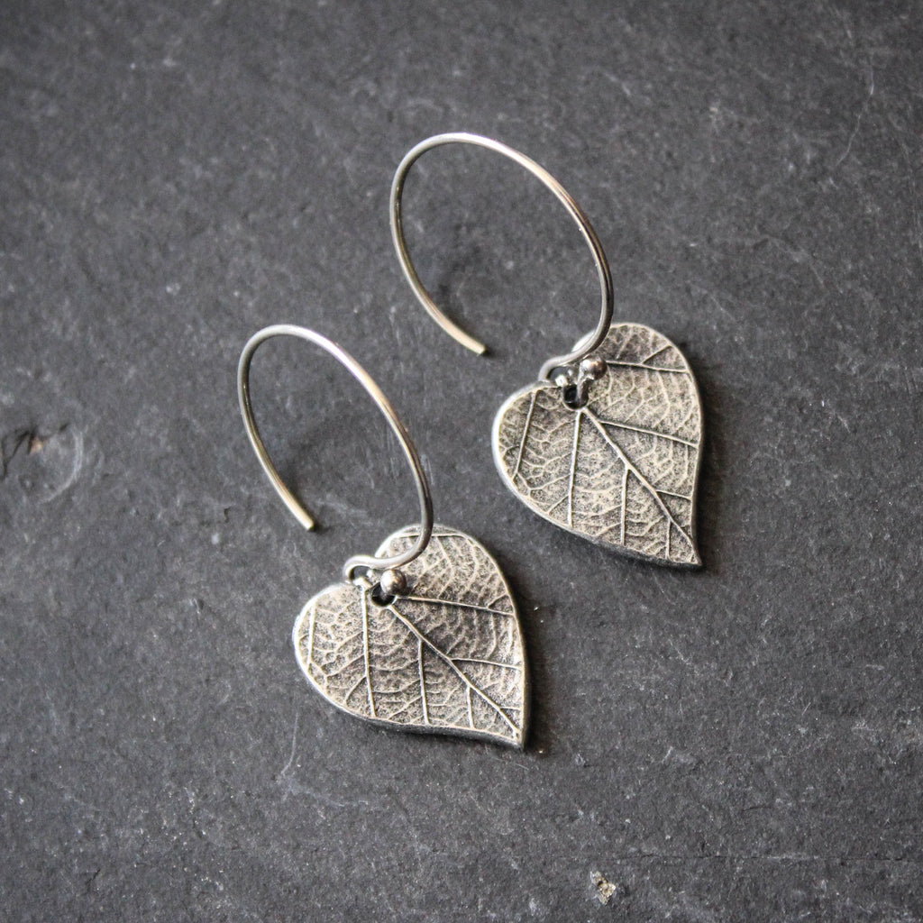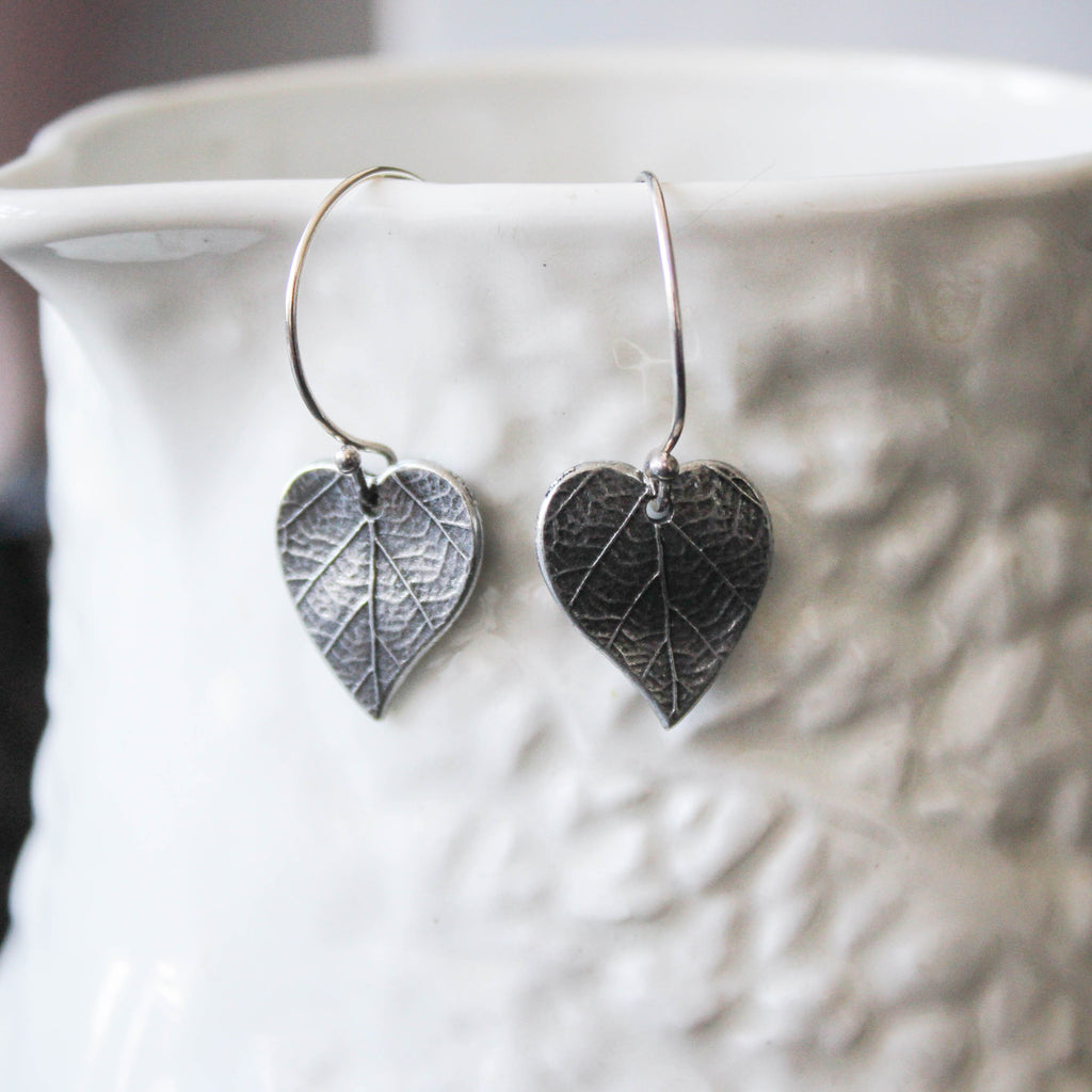 Beautiful everyday botanical earrings in pewter with hand forged sterling ear wires
