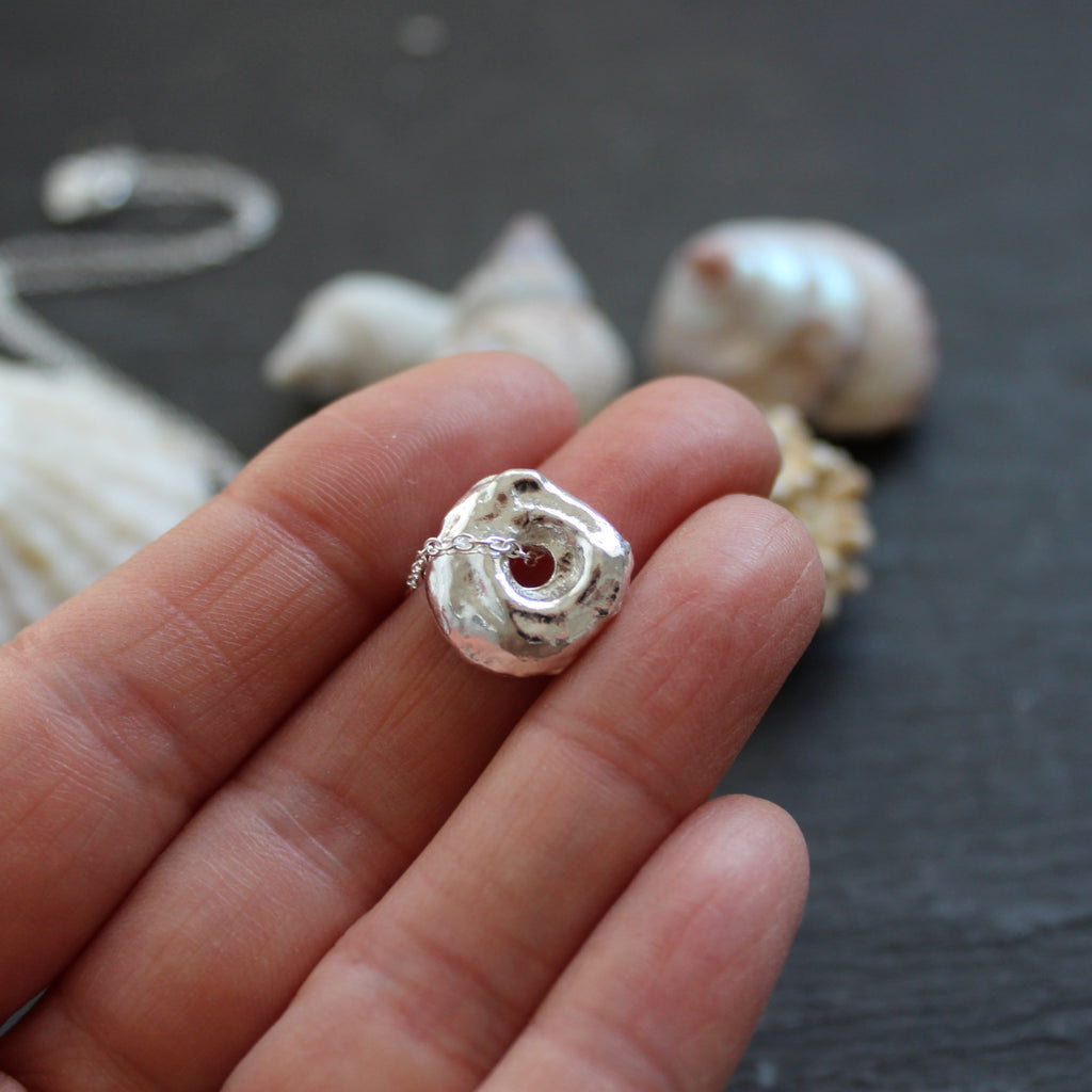 - This design is inspired by magical holey stones usually formed by running water--our version of silver is formed by fire, quenched in water and air
