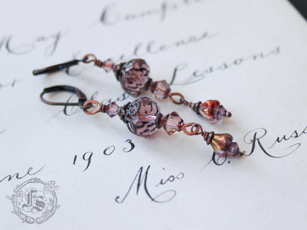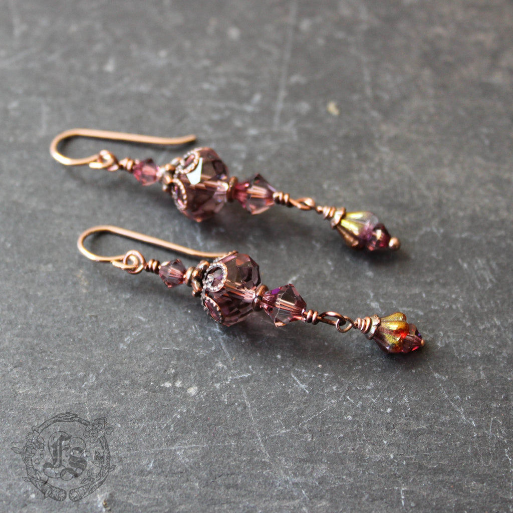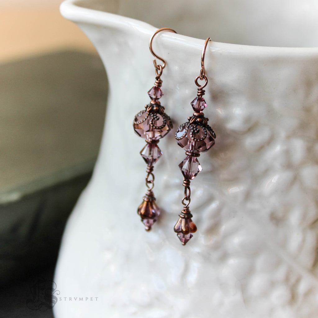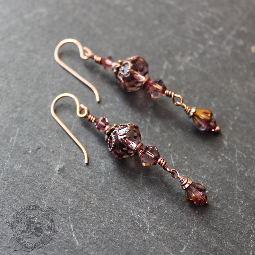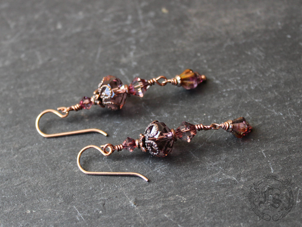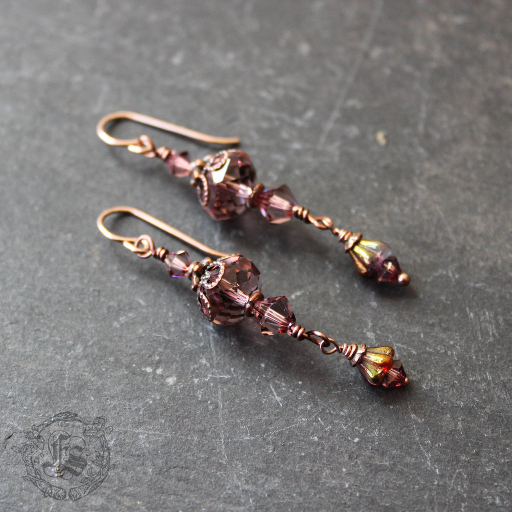 Little swinging lantern earrings of dusky rose Czech glass.