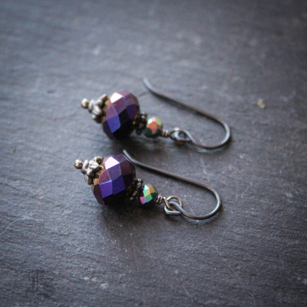 Stardust Earrings. Black Diamond Swarovski Hoops.