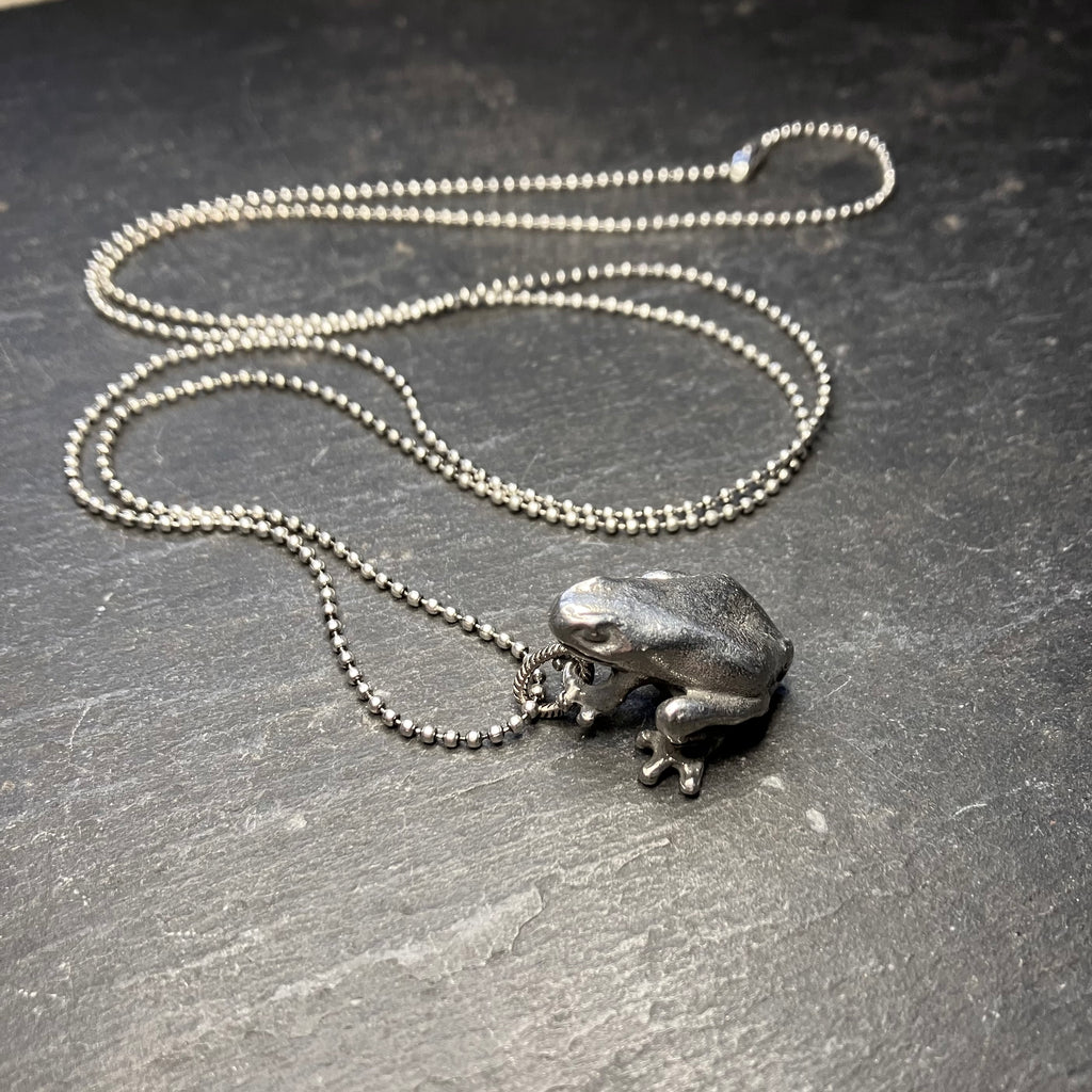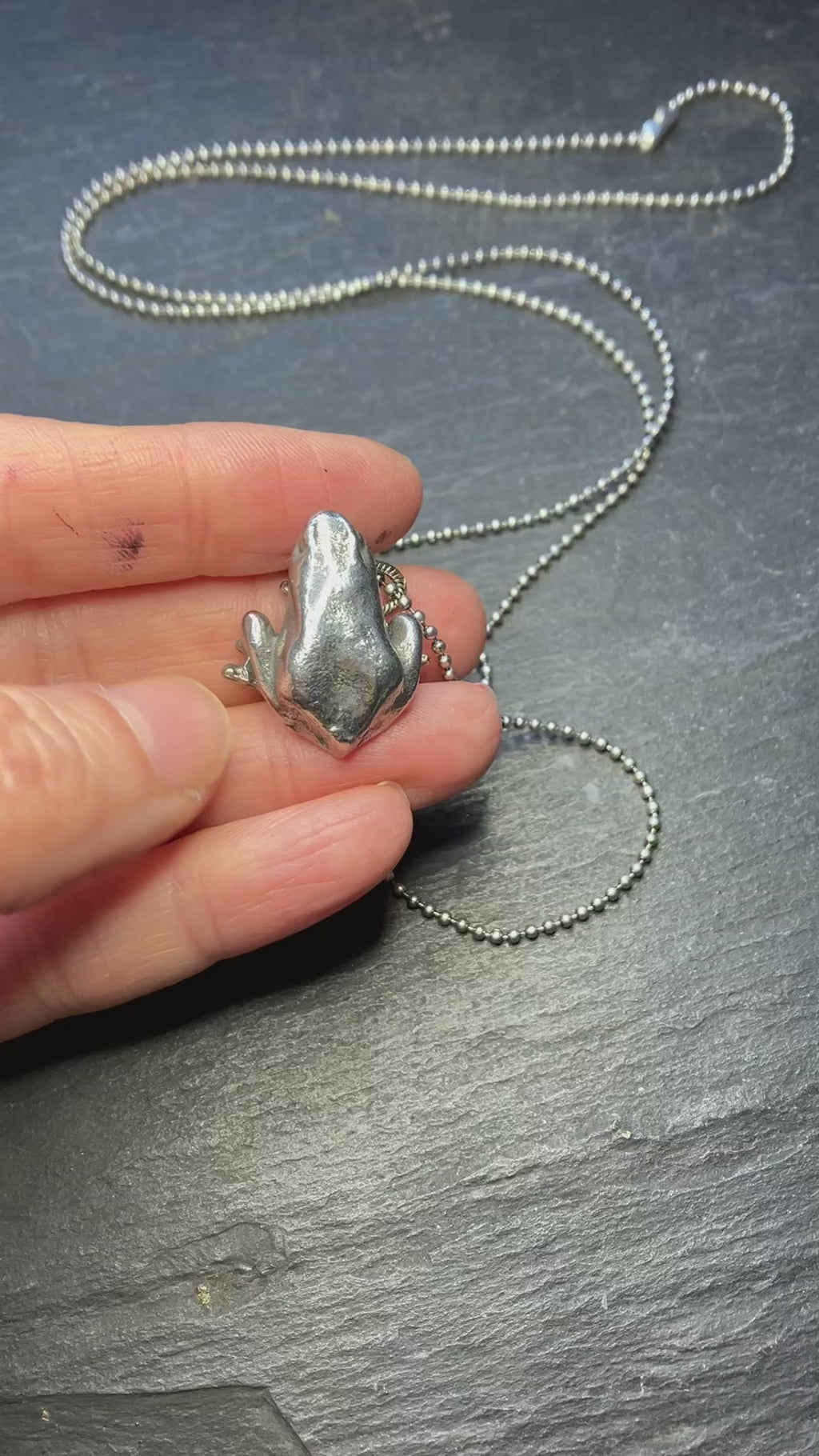 - A beautifully rendered frog pendant is hand cast in nickel-free/lead-free pewter