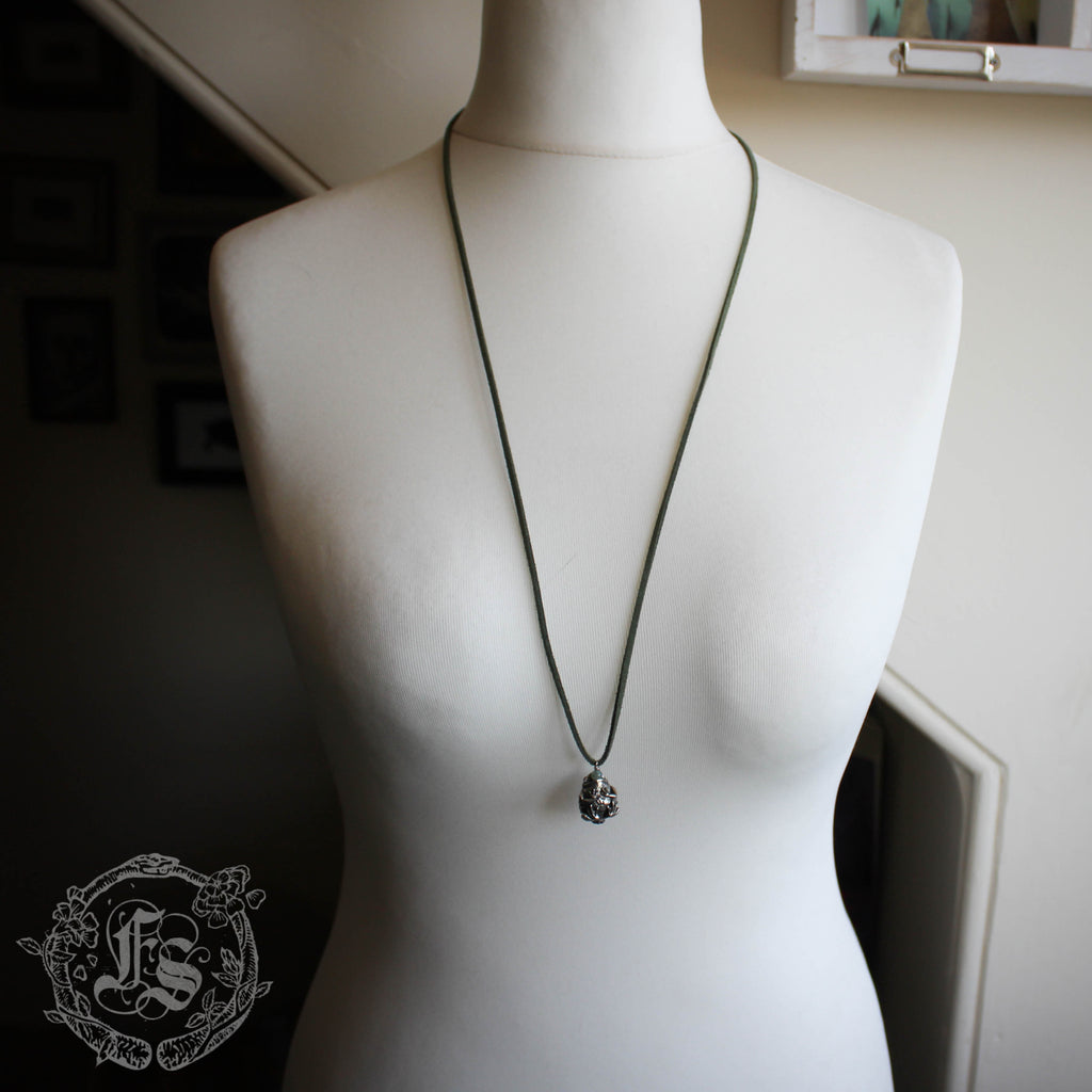 "An absolutely stunning & well detailed pendant. She's been crafted so well & is so cute. I like the adjustable green cord (so you can have it at various lengths) & I like the fact that she's a little weighty as it feels nice & sturdy. Love having this little creature with me! Thanks so much! " Louise W., United Kingdom