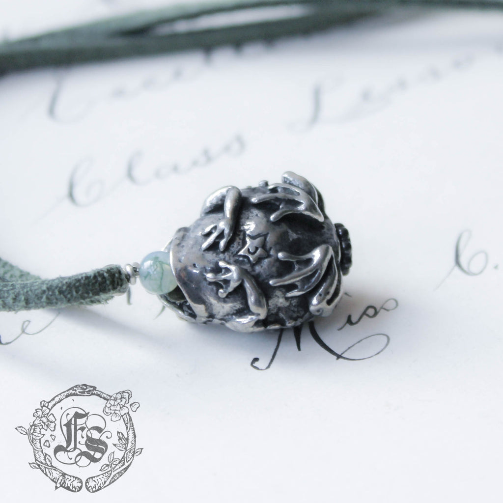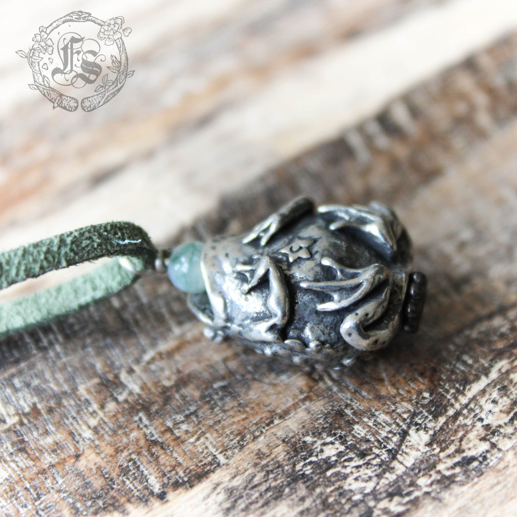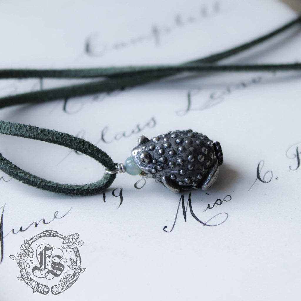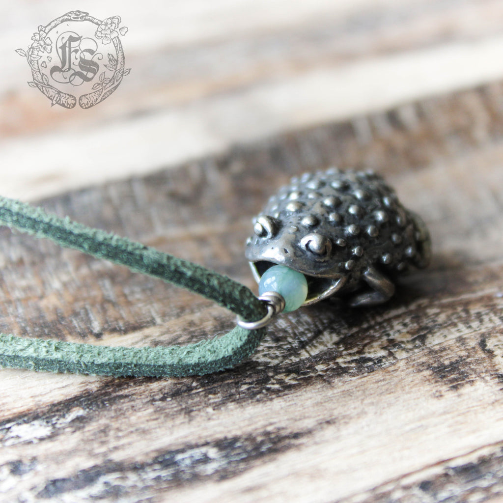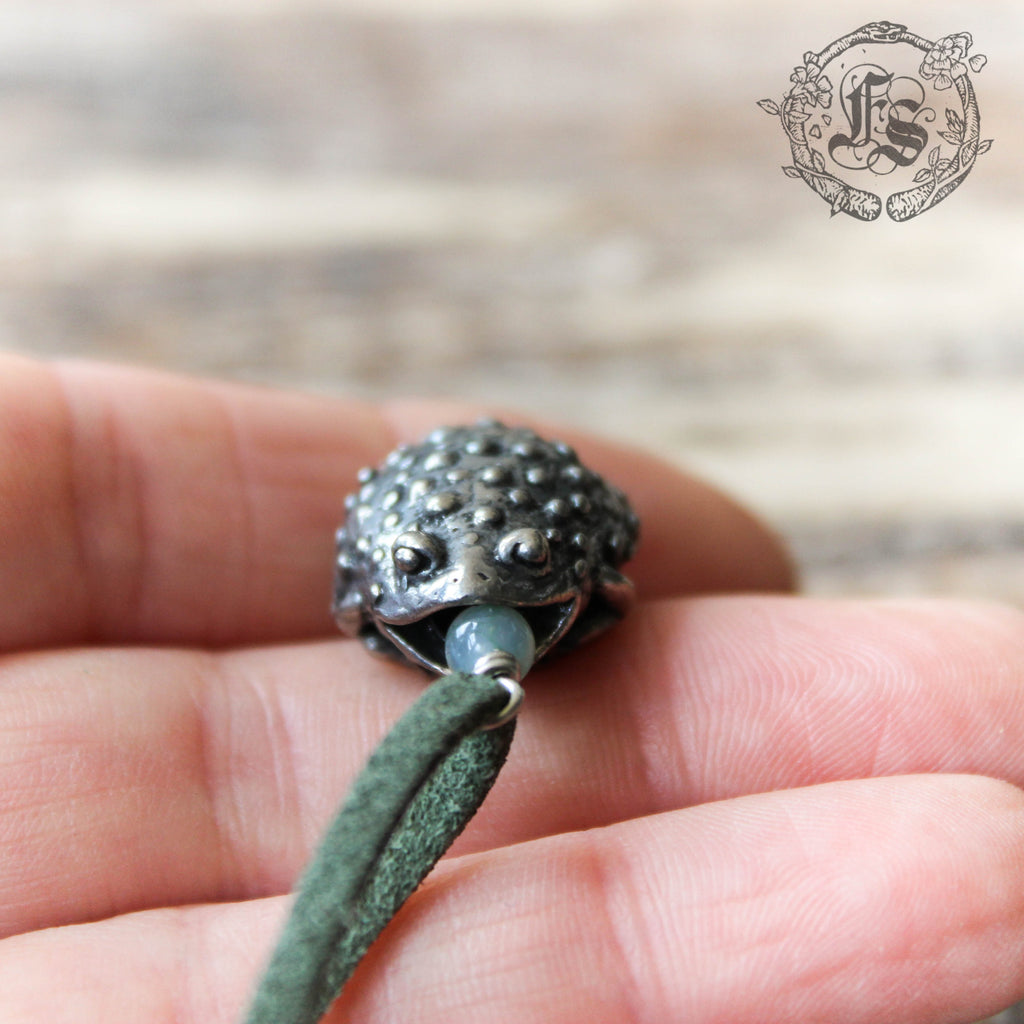 Toad pendant necklace cast in lead-free/nickel-free pewter.