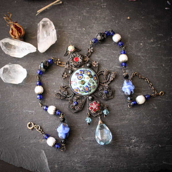 Nine Maidens. Vintage Sterling and Onyx Necklace.