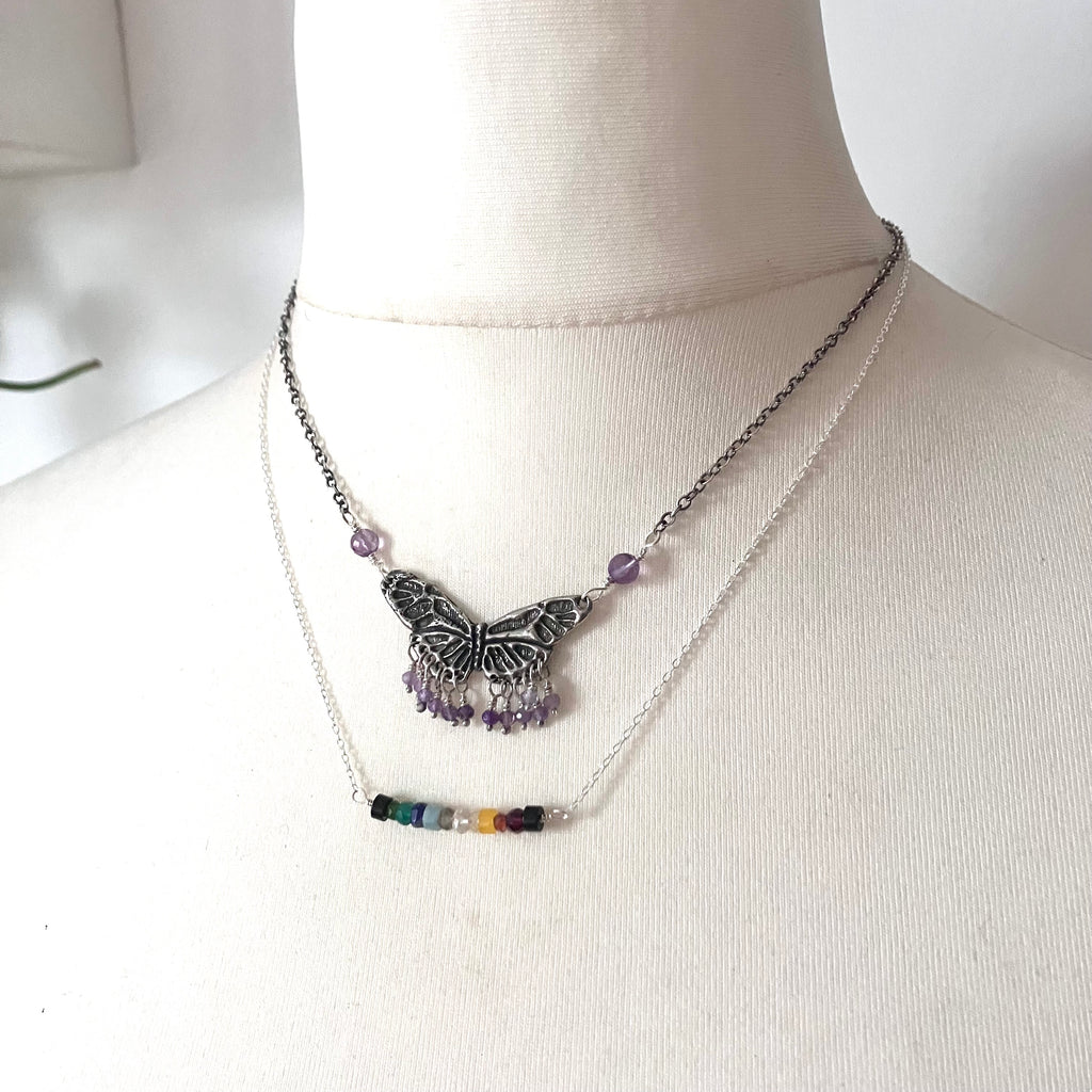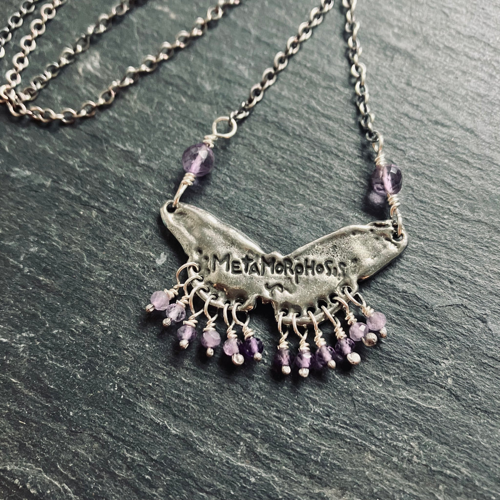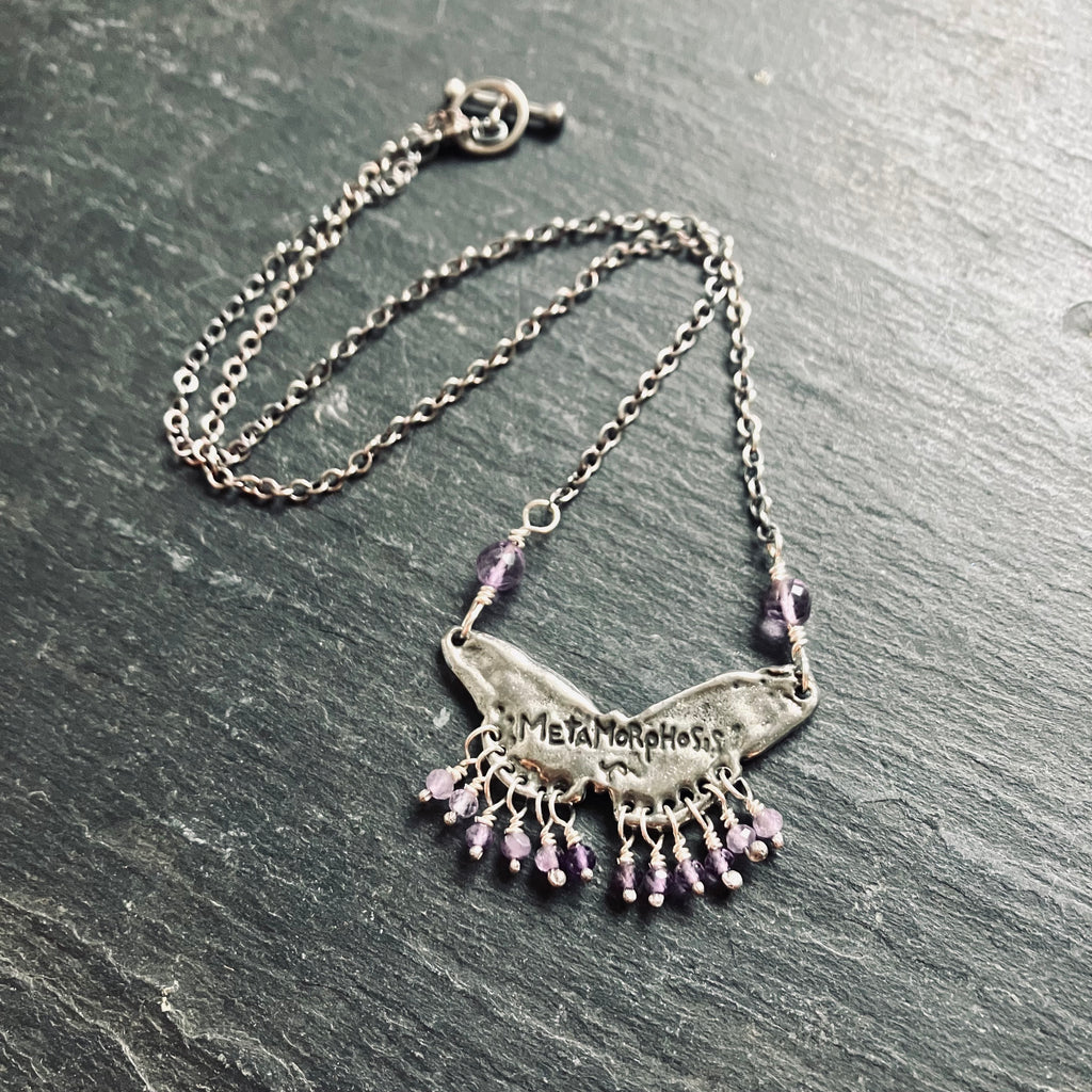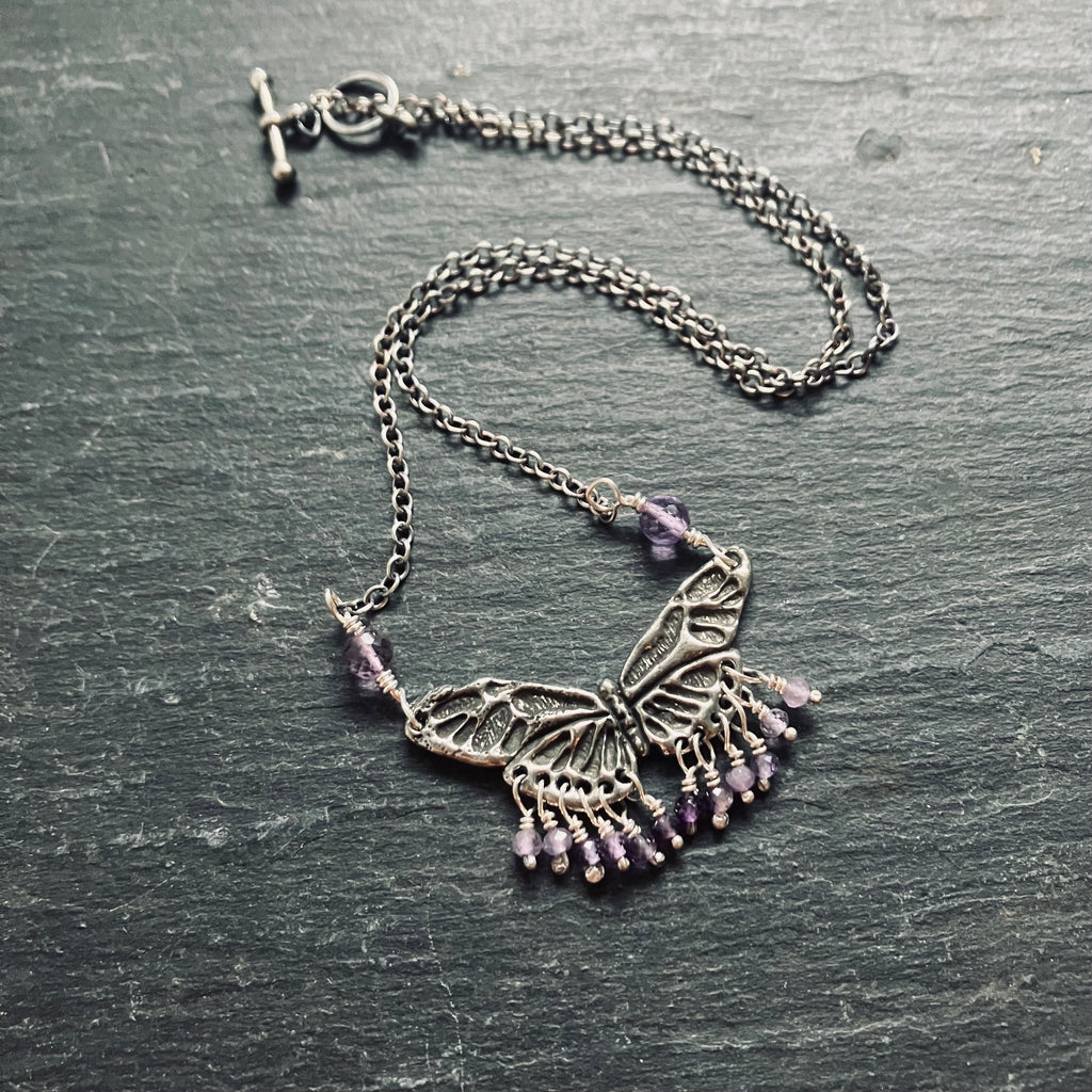 Amethyst Butterfly Necklace in Pewter and Sterling Silver