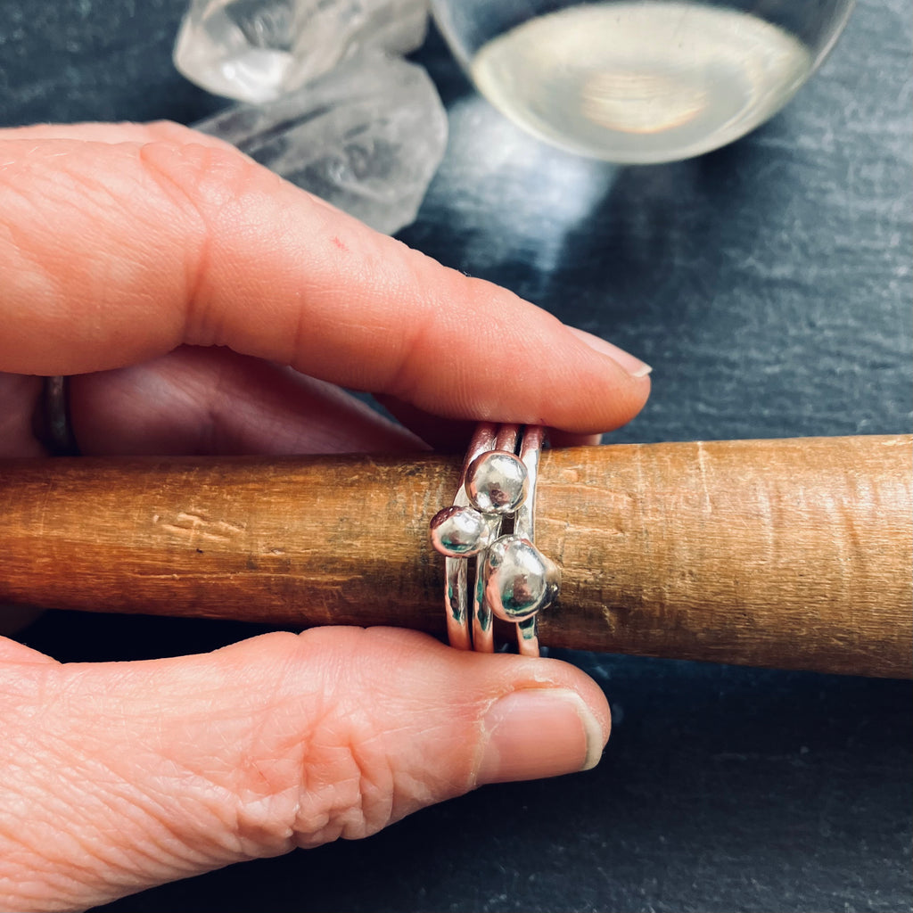 • An organic, rustic set of 3 stacking rings