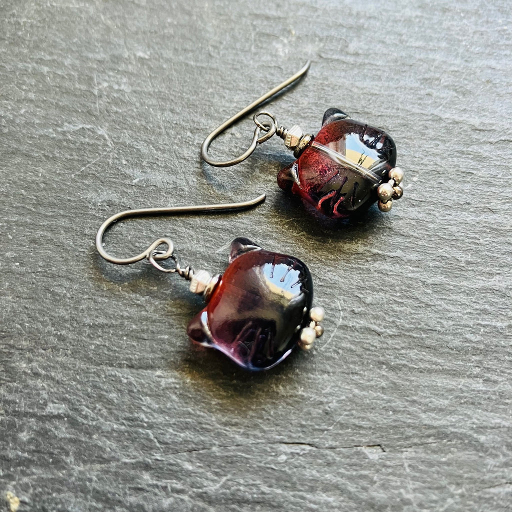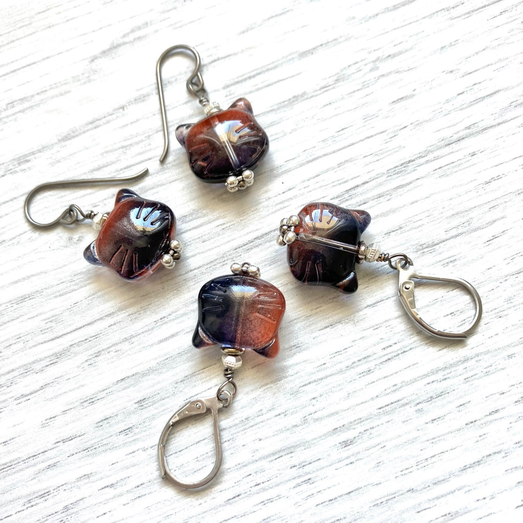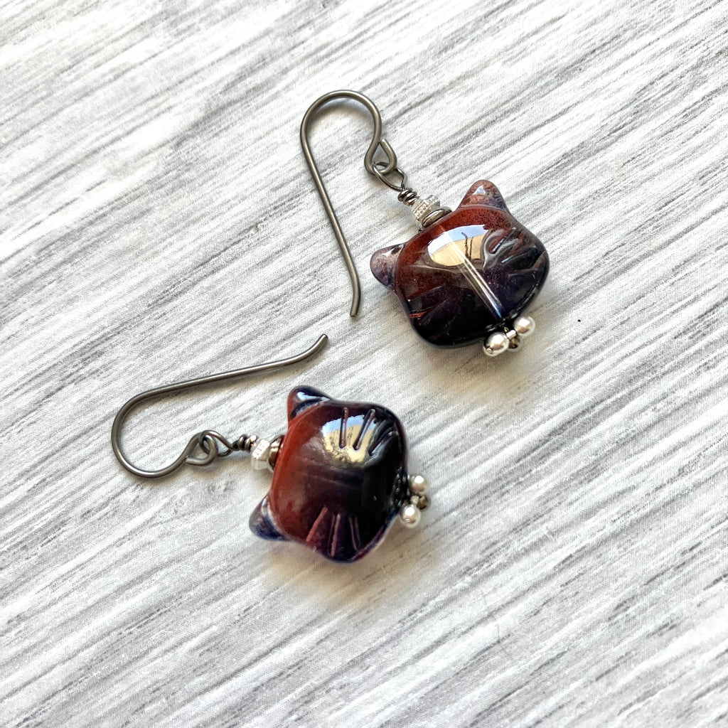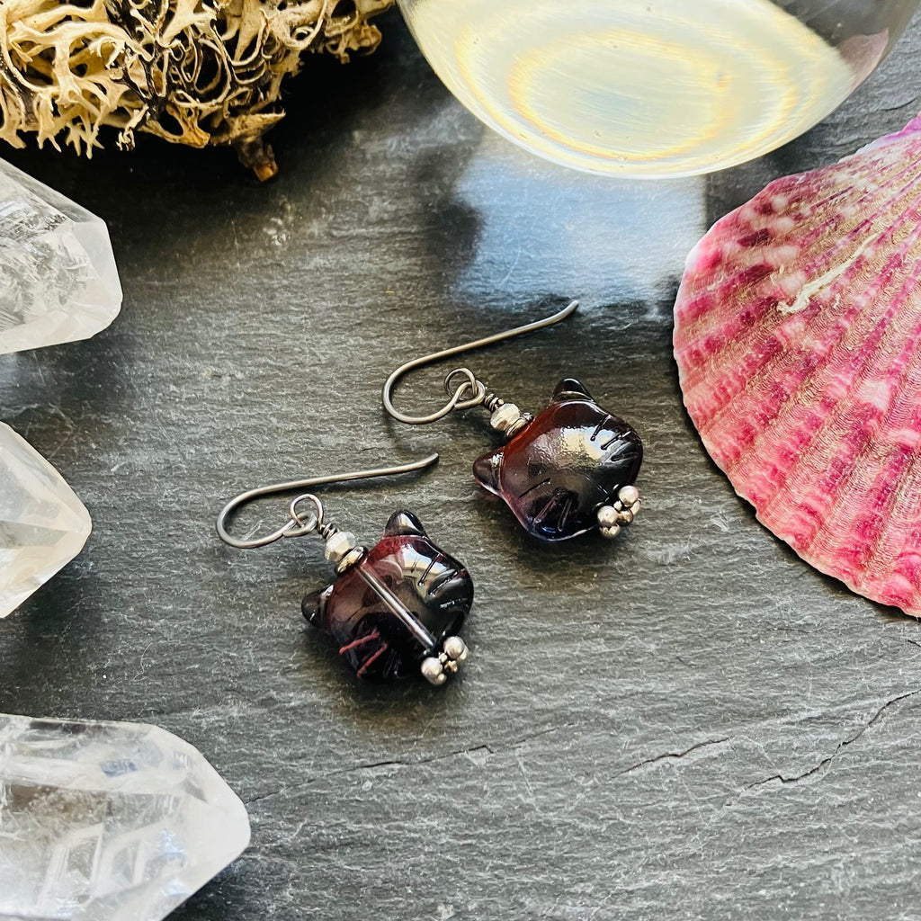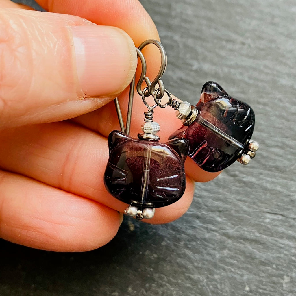 Adorable and mysterious kitty earrings made of prismatic glass with your choice of ear wires.