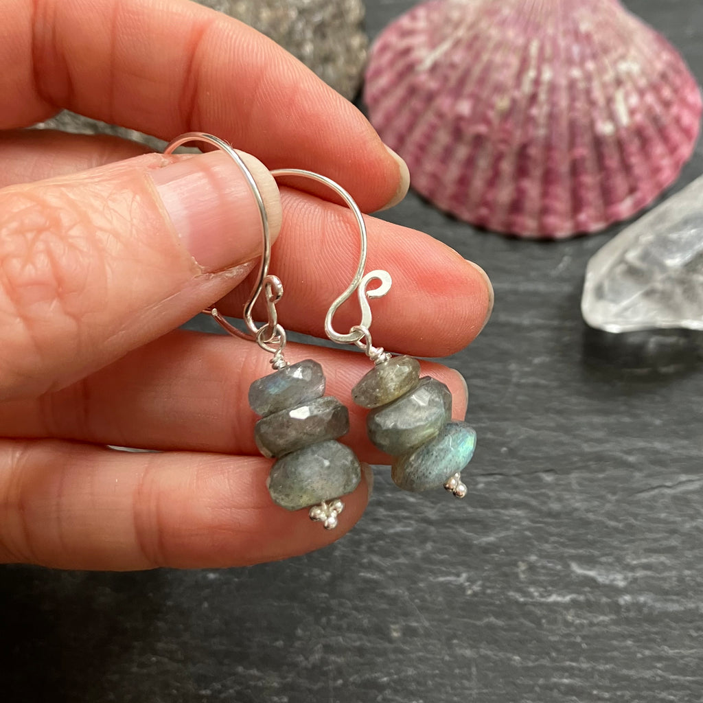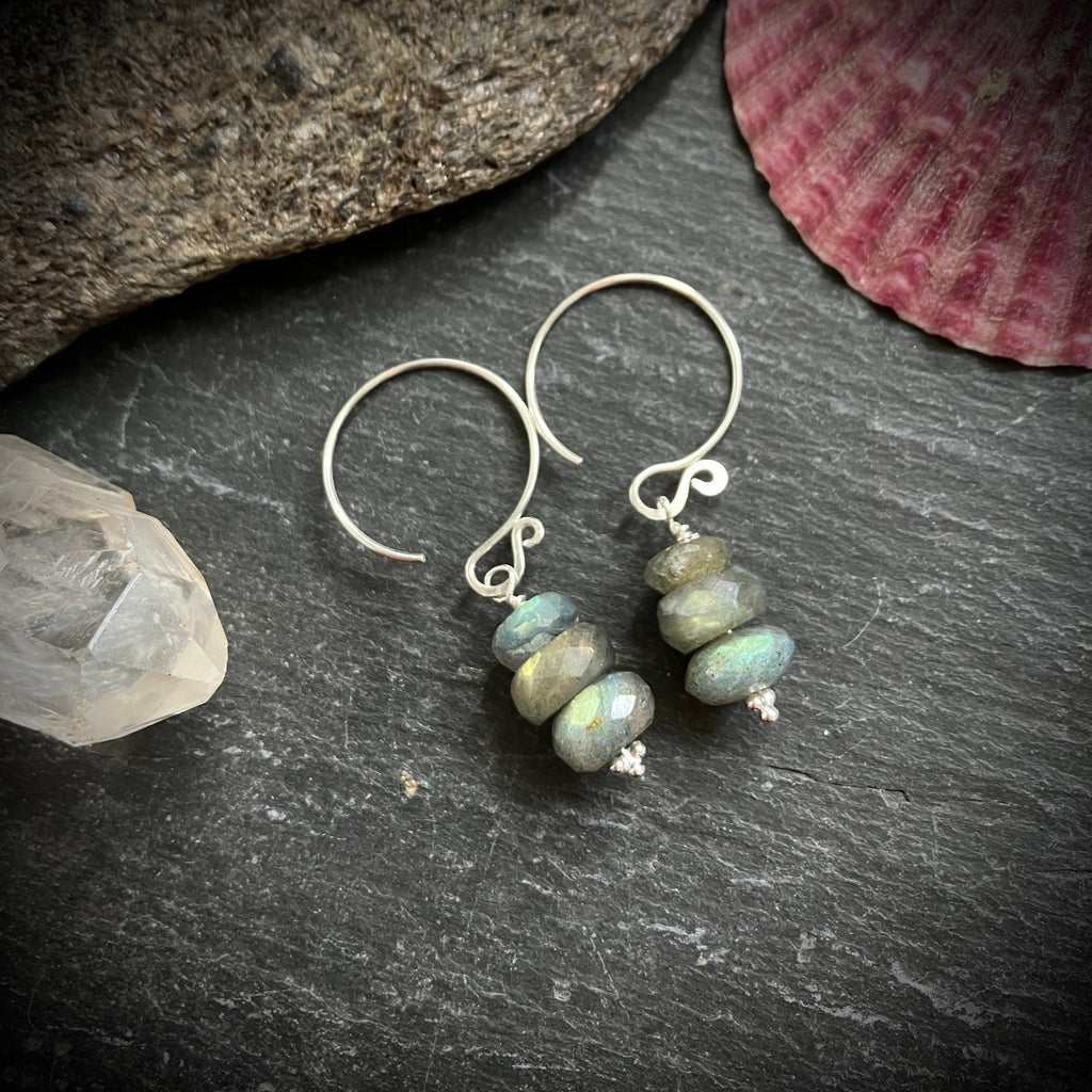 Gloaming Seastack Earrings in Sterling Silver & Labradorite