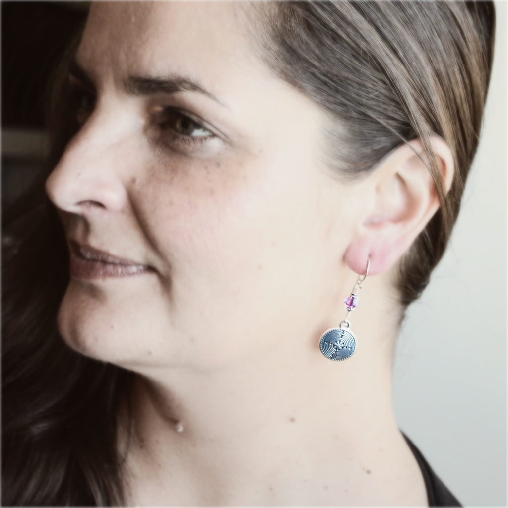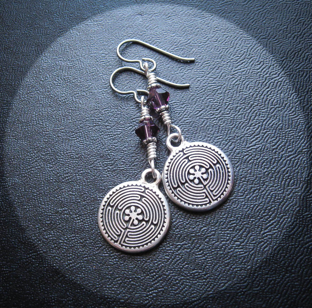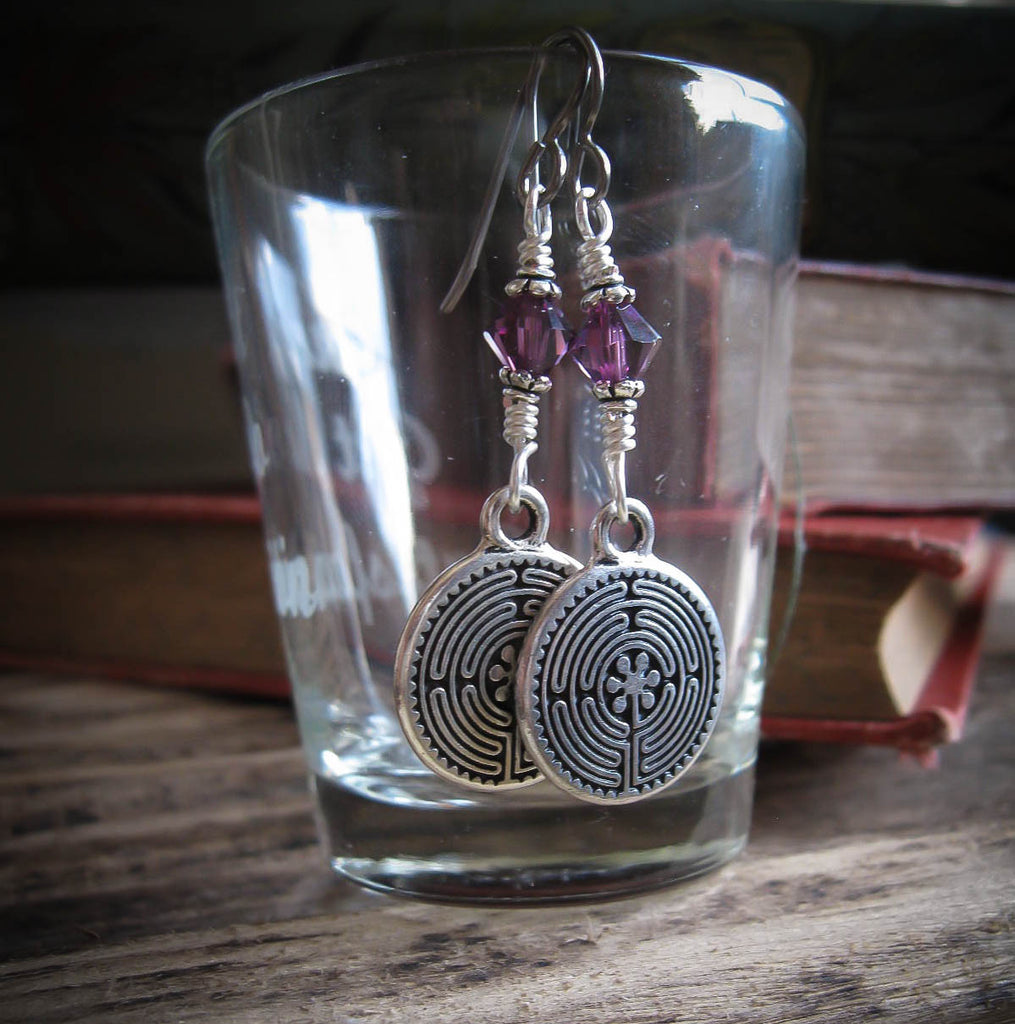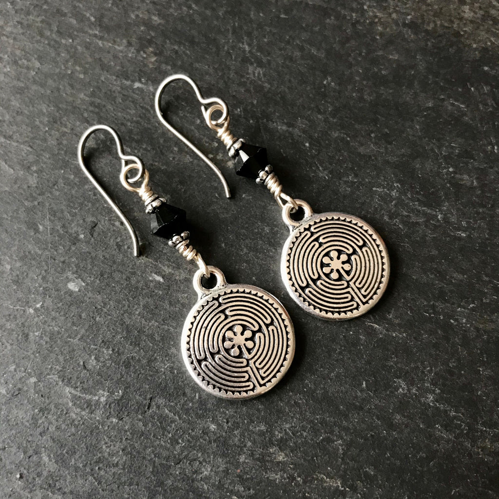 Simple Chartres Labyrinth earrings with your choice of Swarovski crystal accents.