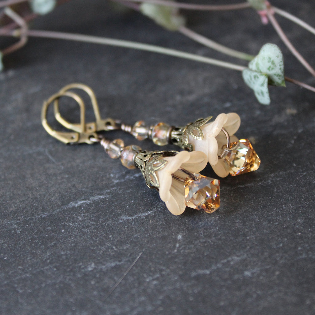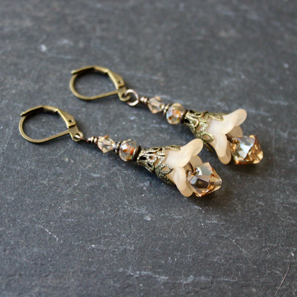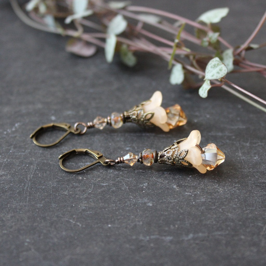 These magical flowers are perfect everyday earrings, inspired by the pale pastel hues of the magical hellebore flower--an ingredient in witches flying ointment.