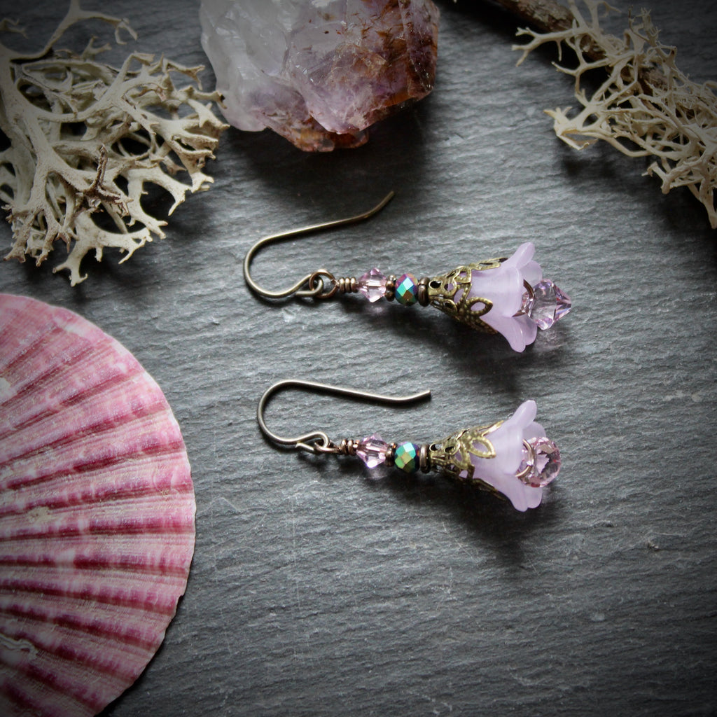 These magical flowers are perfect everyday earrings, inspired by the pale hues of fragrant lavender.