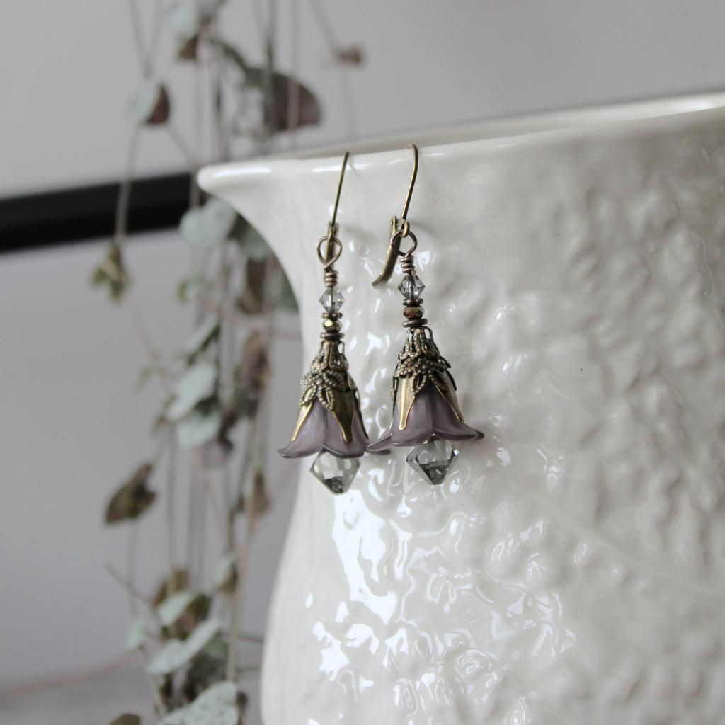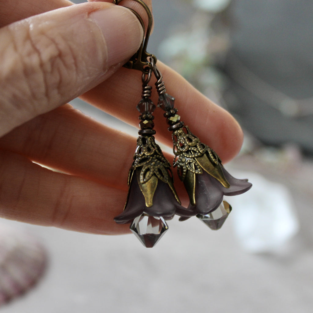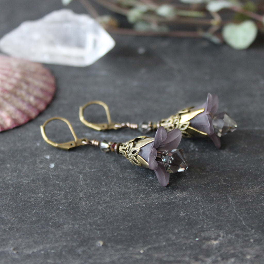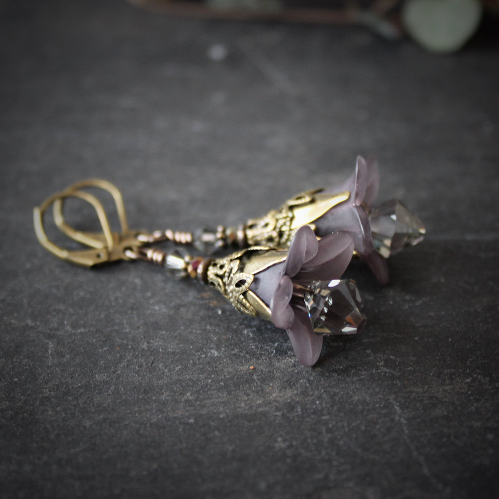 Elegant and fey, Victorian-inspired smoke grey earrings.