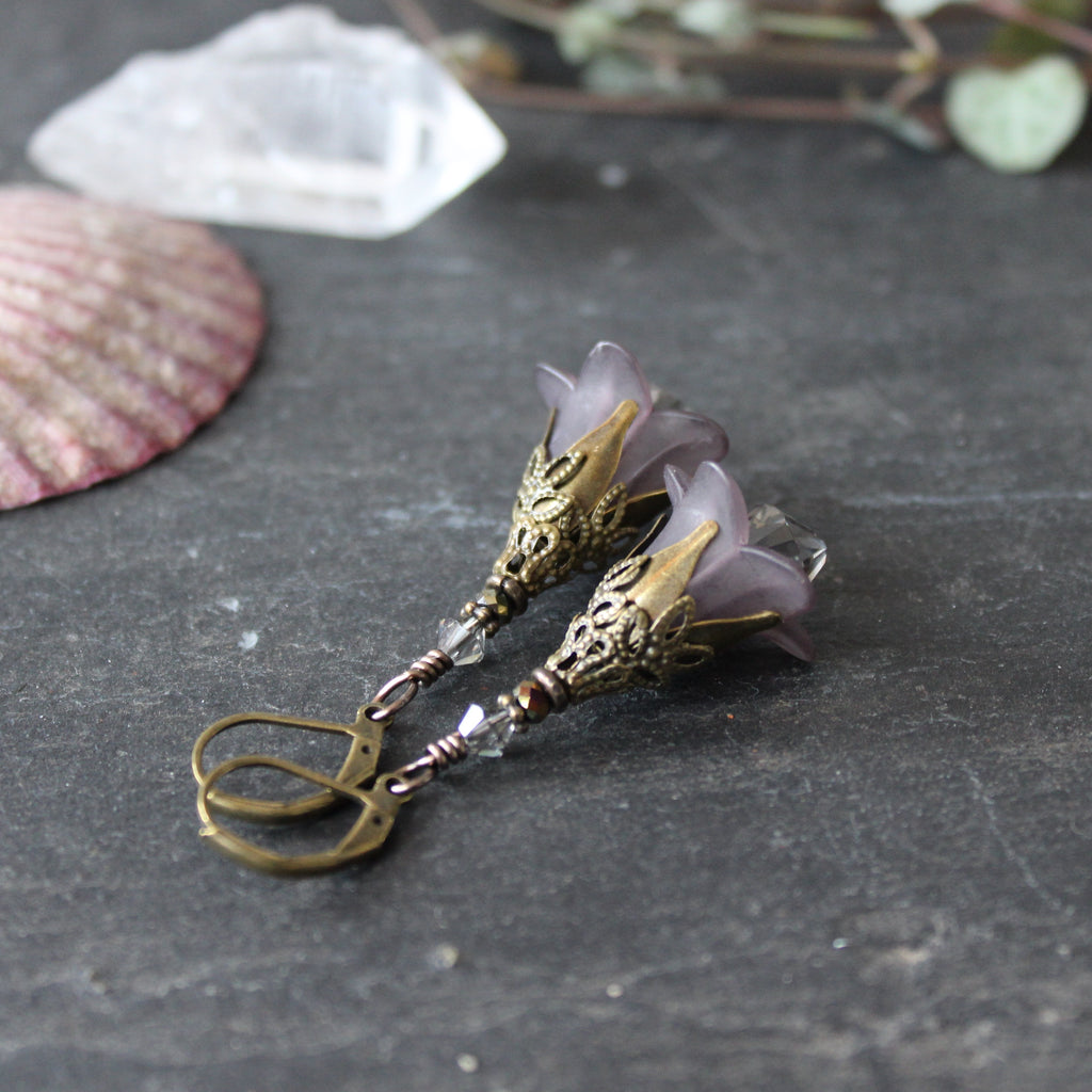 - These fairy blossoms are crowned in layers of brass filigree and faceted Czech glass.