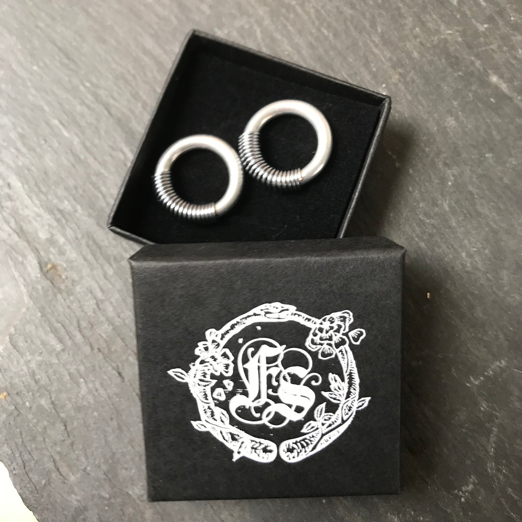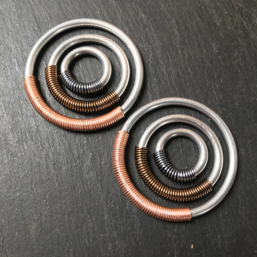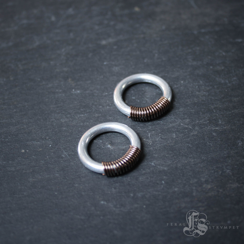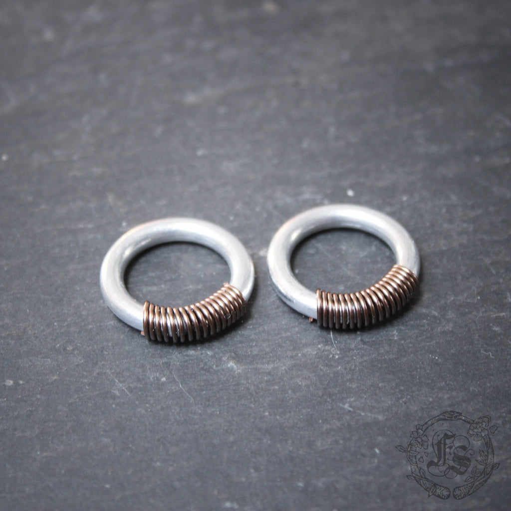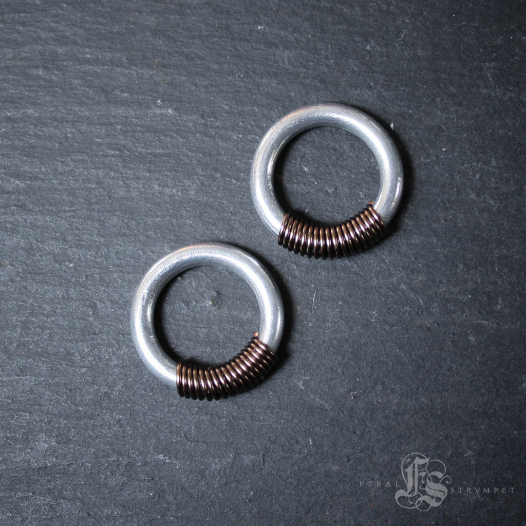 6 gauge (3.25mm) threader hoops made of lightweight aluminium.