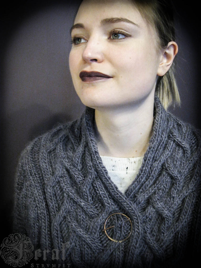 This pin is featured in Staci Perry's Easy Knit Sweater Jacket Tutorial at Very Pink Knits. You can learn about the pattern (and get a how-to on how to fasten these brooches) here.