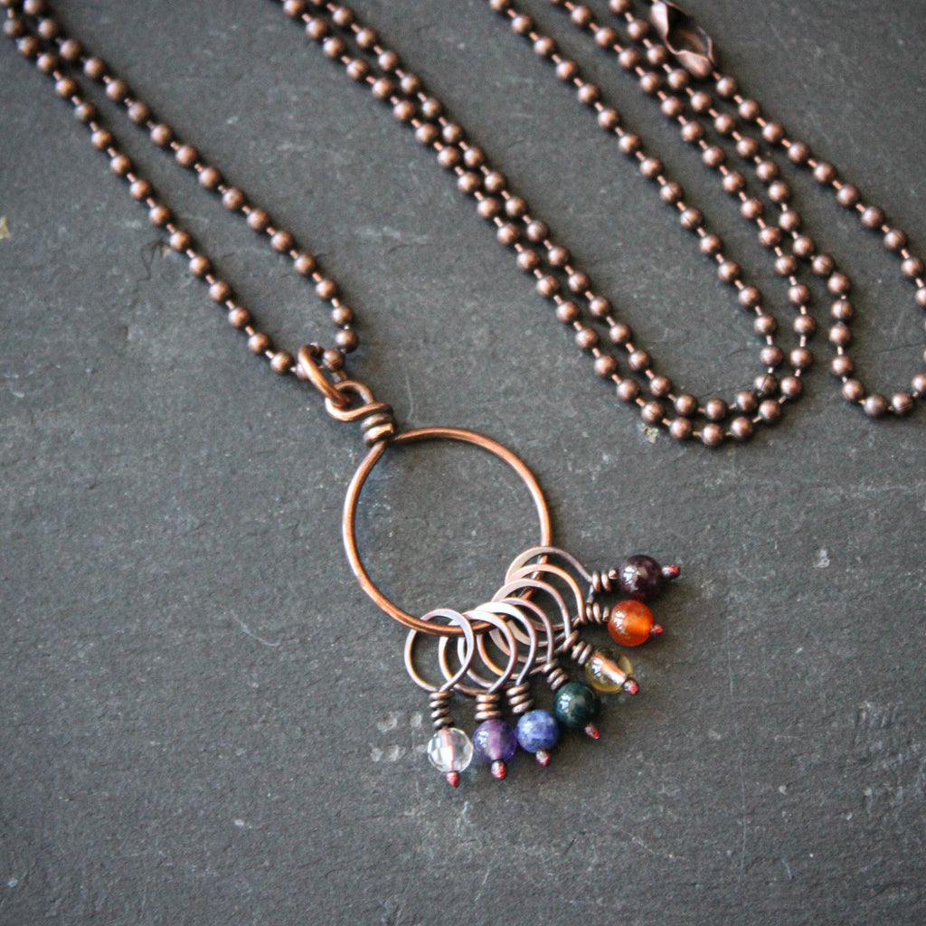 A rainbow stitch marker set necklace to help you sort your stitches.