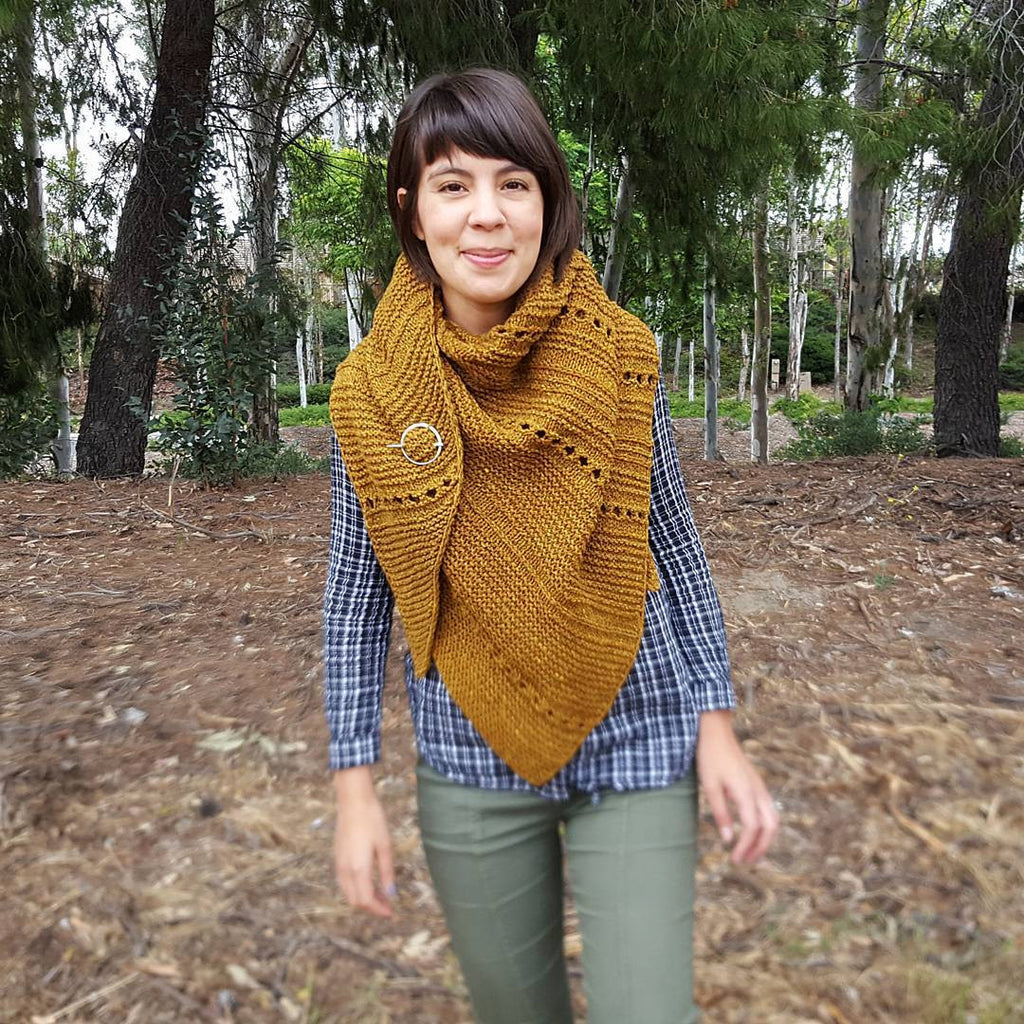 The first five photos show the larger pin, and the rest show the smaller version. Janel Rohrig of @frumpyknits wears her brooch in the 2" size.