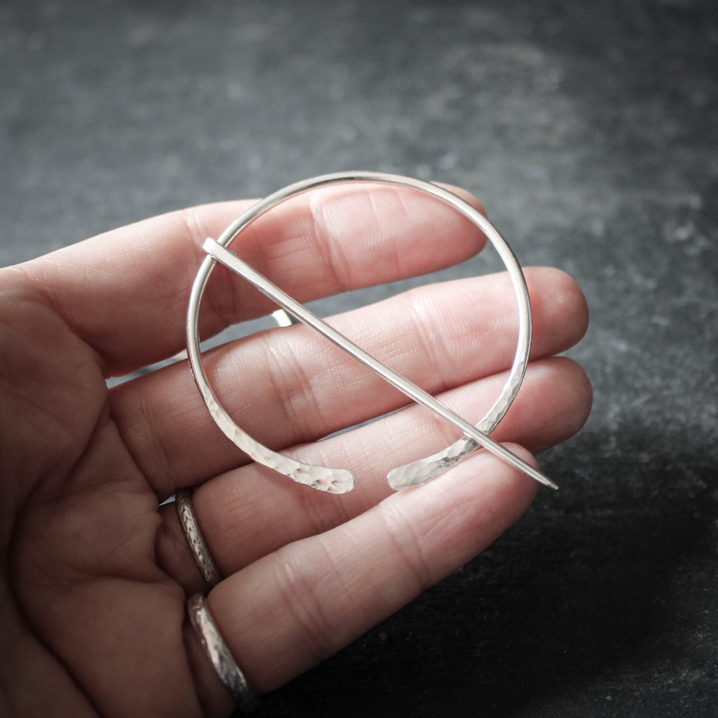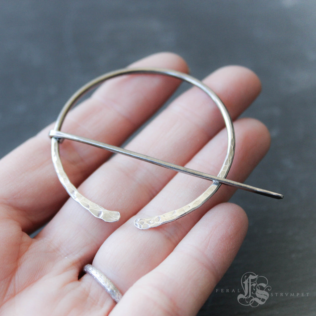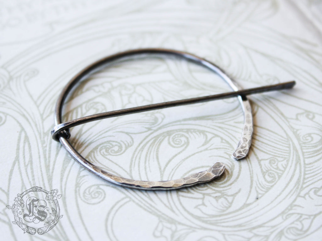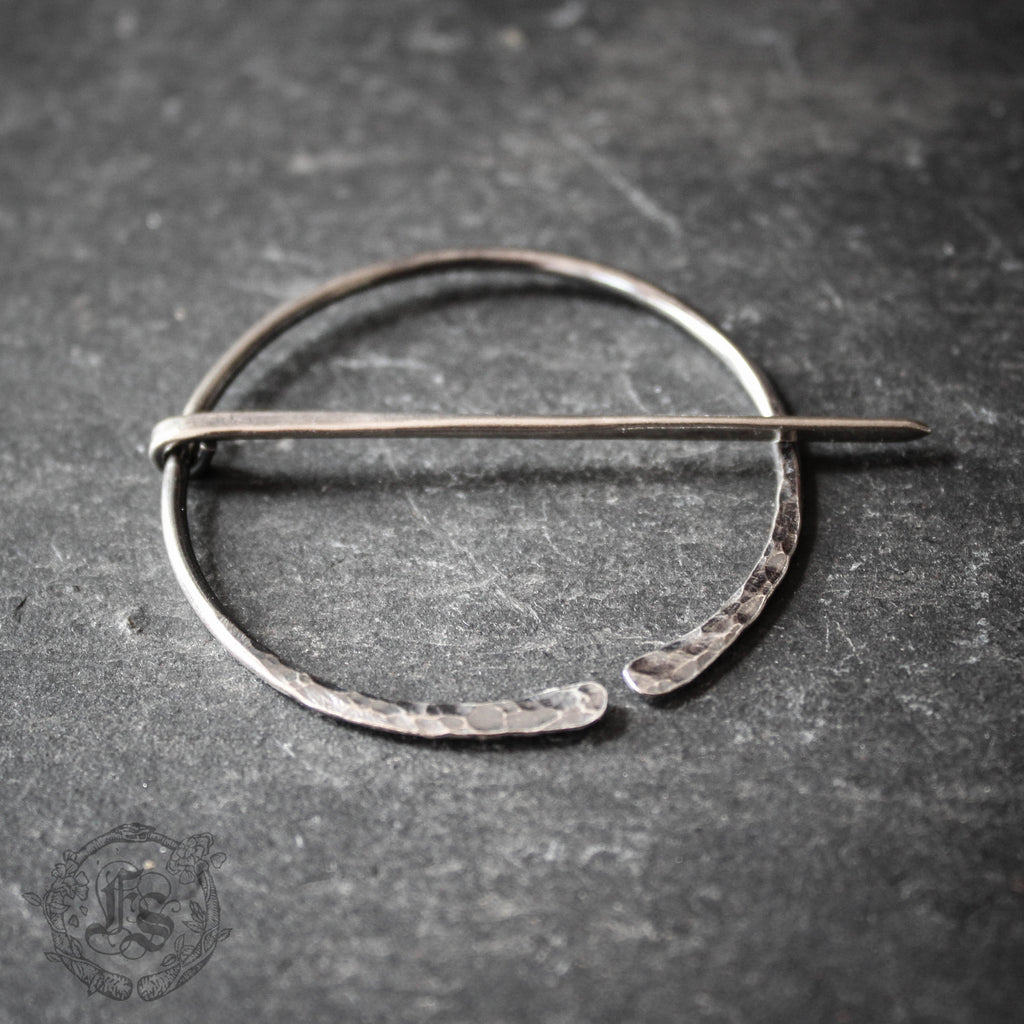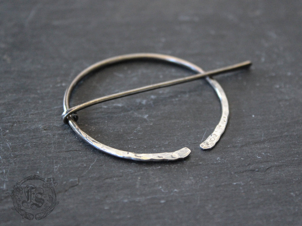 A simple, endless circle of hand forged sterling silver inspired by the moon, ouroboros and archeological finds. This penannular brooch is based on a Pictish design discovered in the North of Scotland.