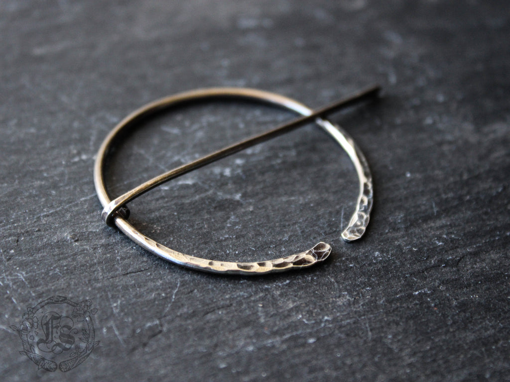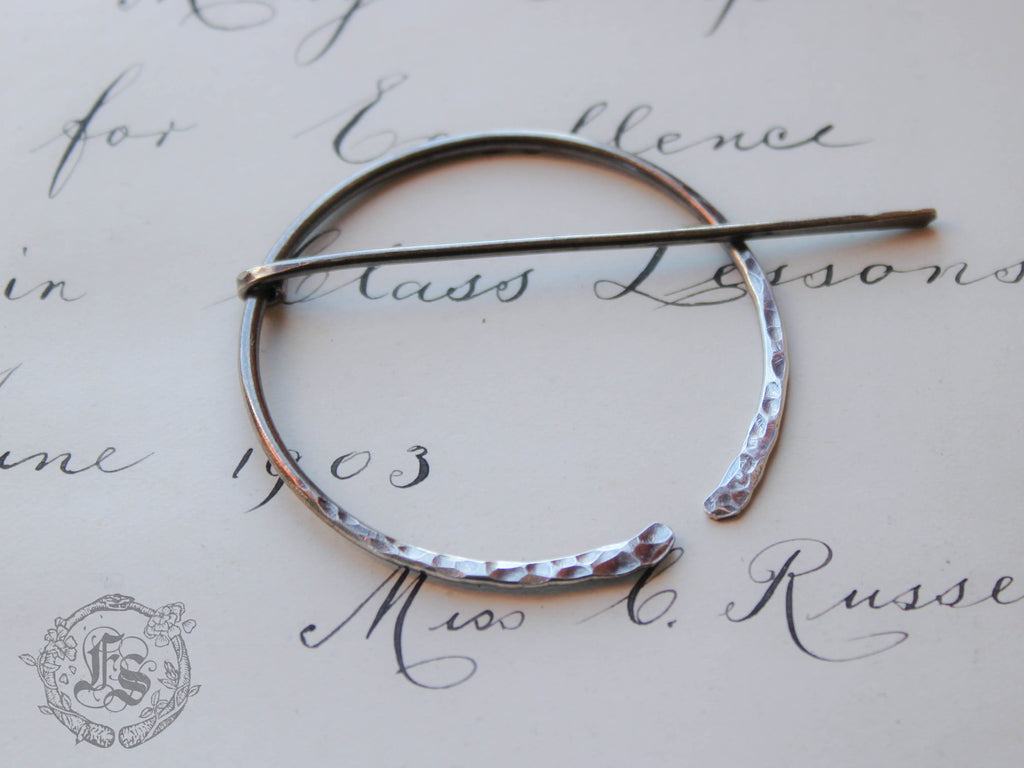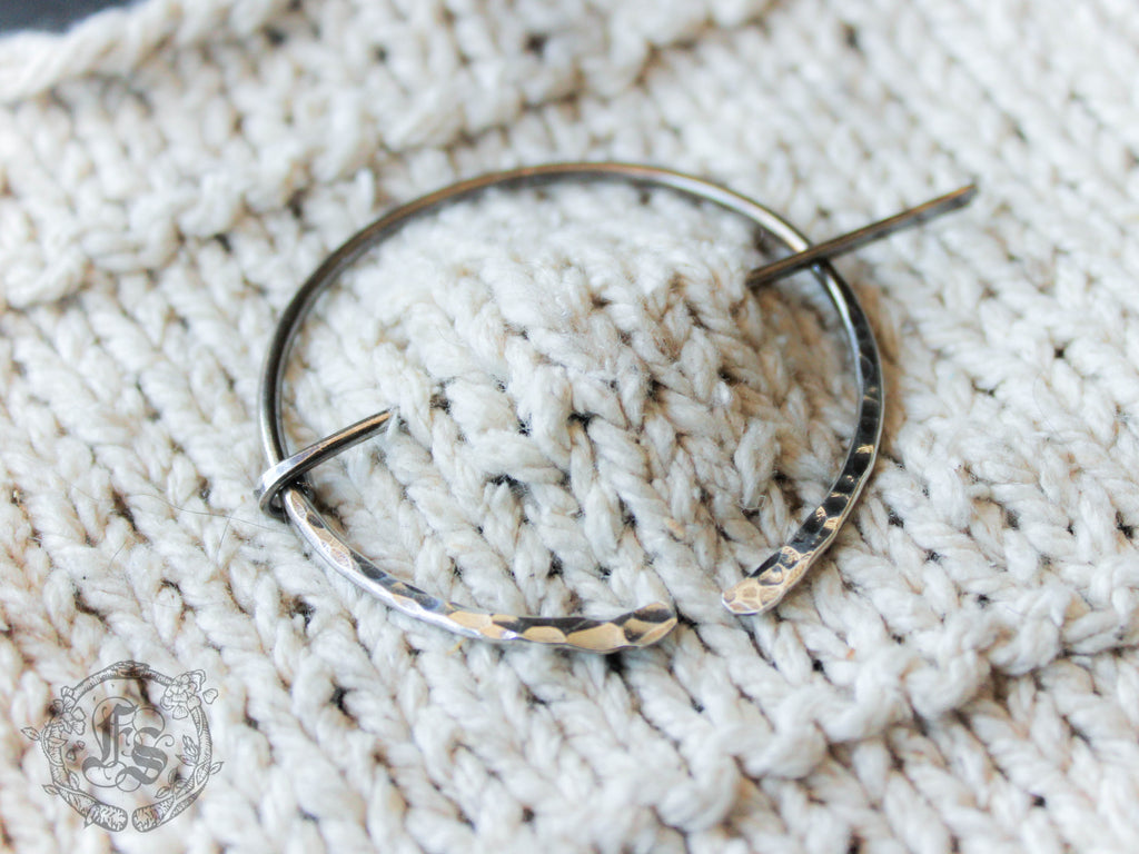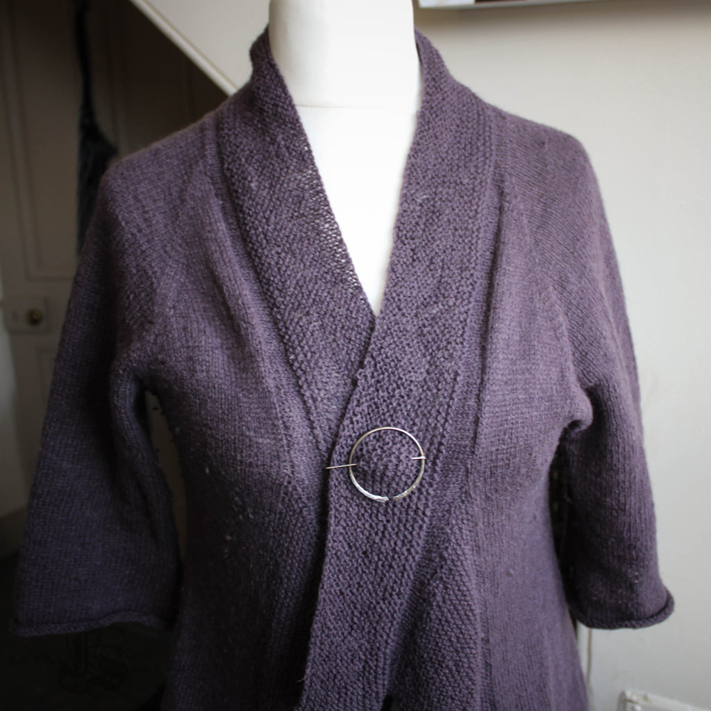 The penannular brooch is an elegant and practical design. Once the fabric has been secured on the pin, the circular frame can be turned around the pin, securing the brooch in place. I wear mine with my hand-knitted cardigans, shawls and coats, as I prefer this type of closure to buttons or clasps that come undone.