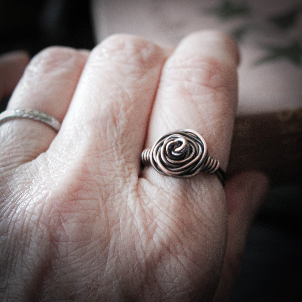 Delicate Glasgow rose ring in copper.