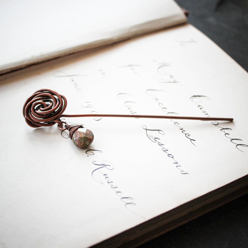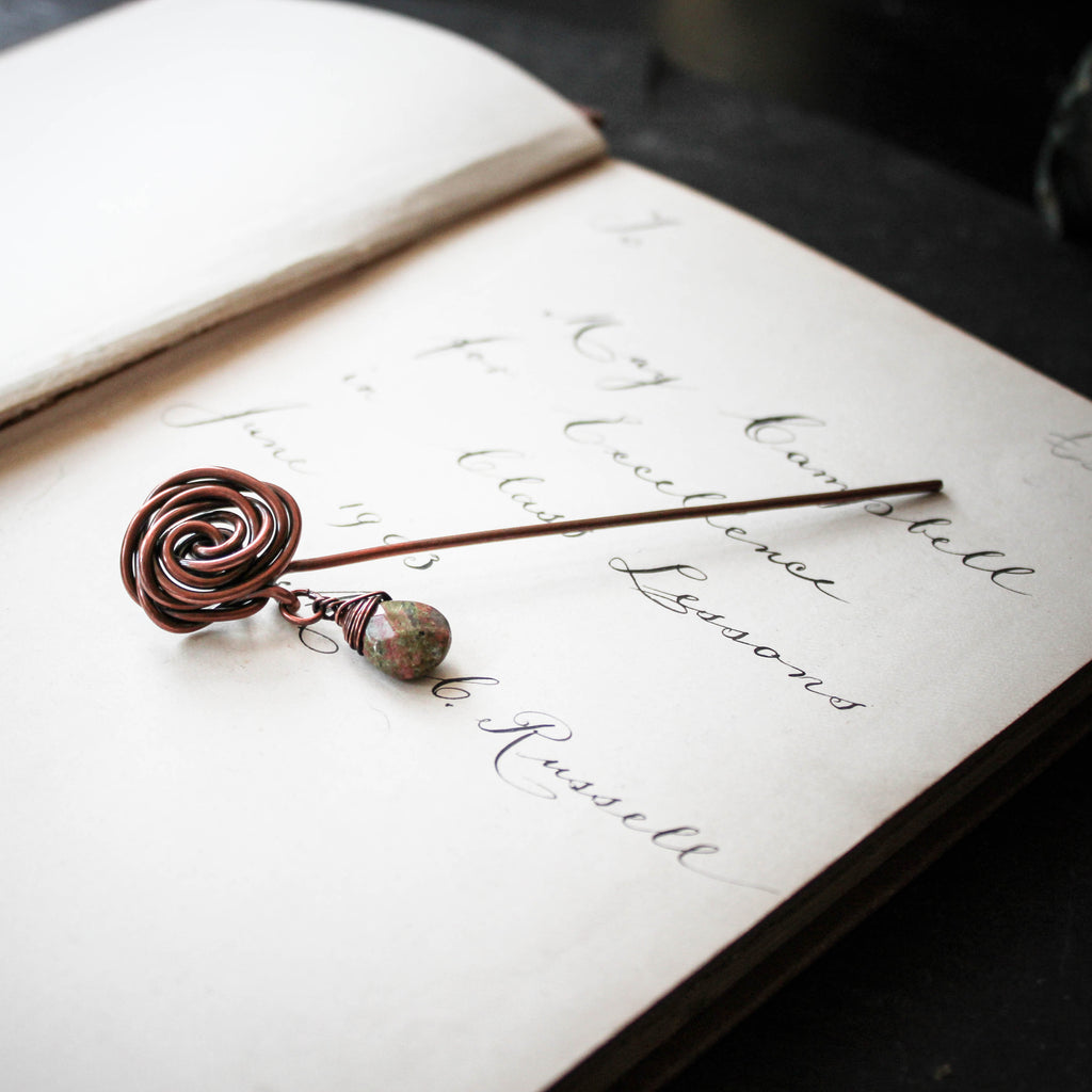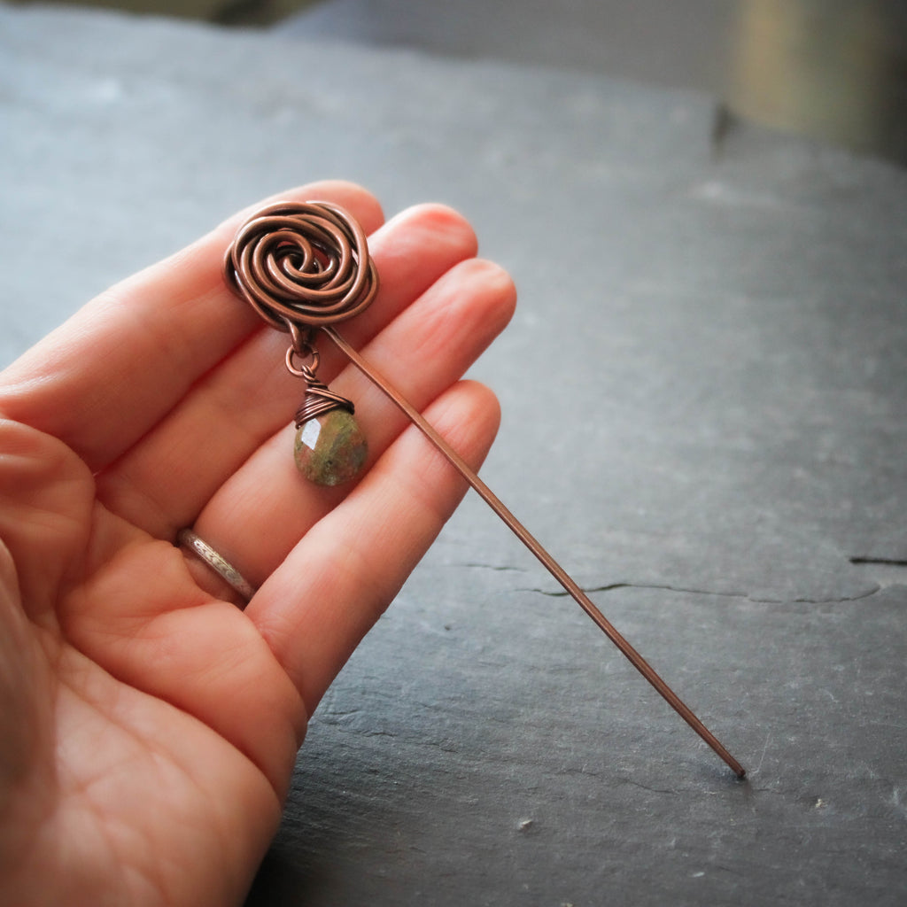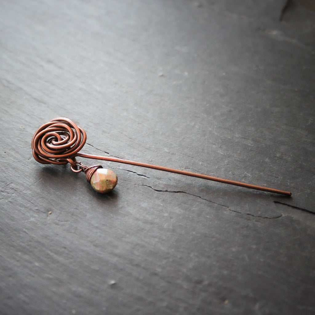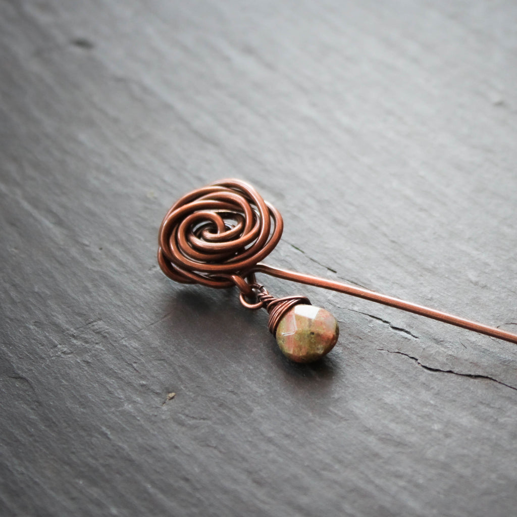 Glasgow Rose Shawl Pin with Unakite Drop