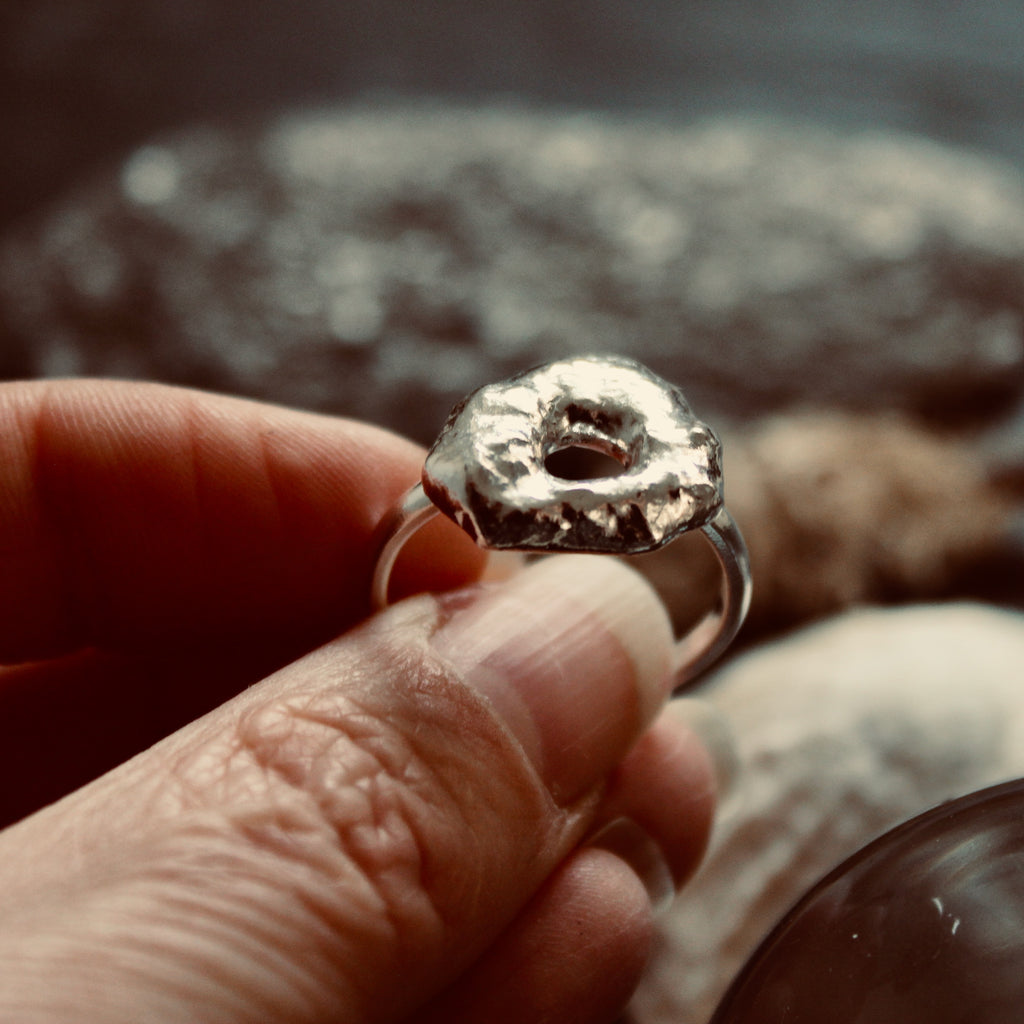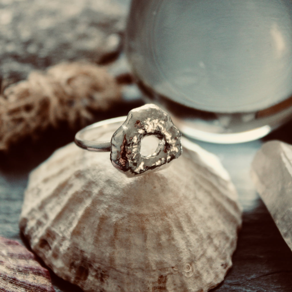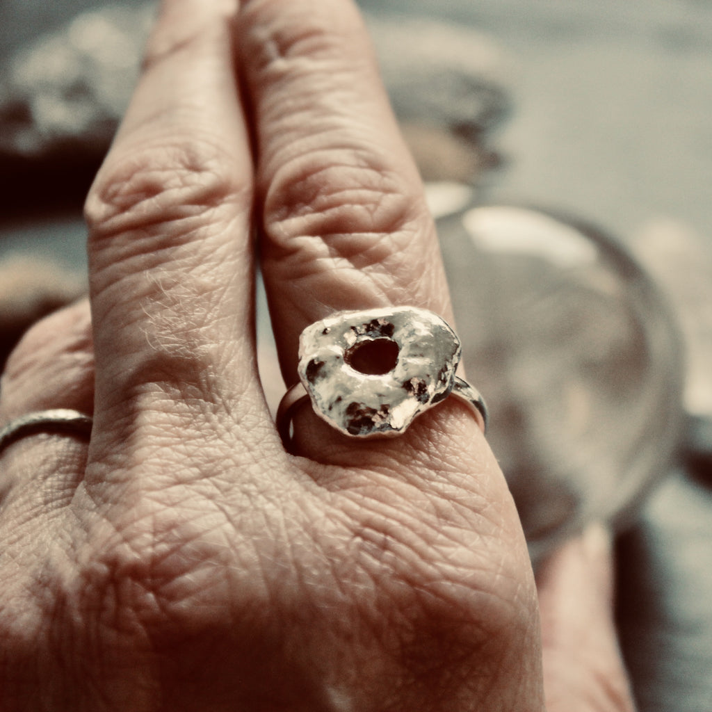 Hag Stone Ring in Sterling Silver 8.5 US UK Q