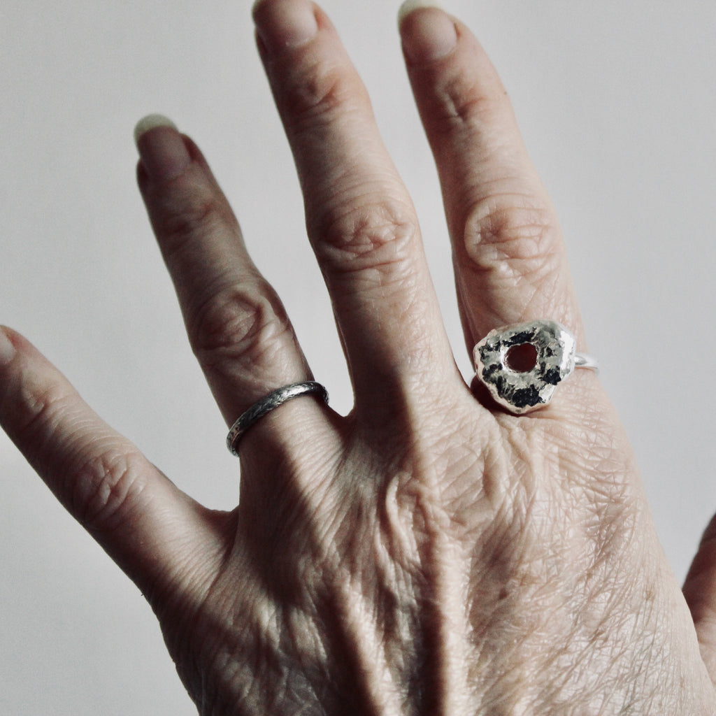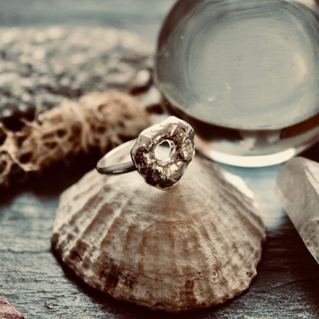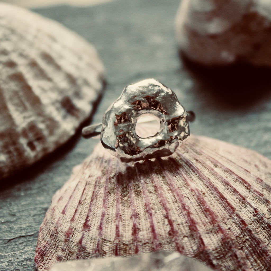 Hag Stone Ring in Sterling Silver 8.5 US UK Q