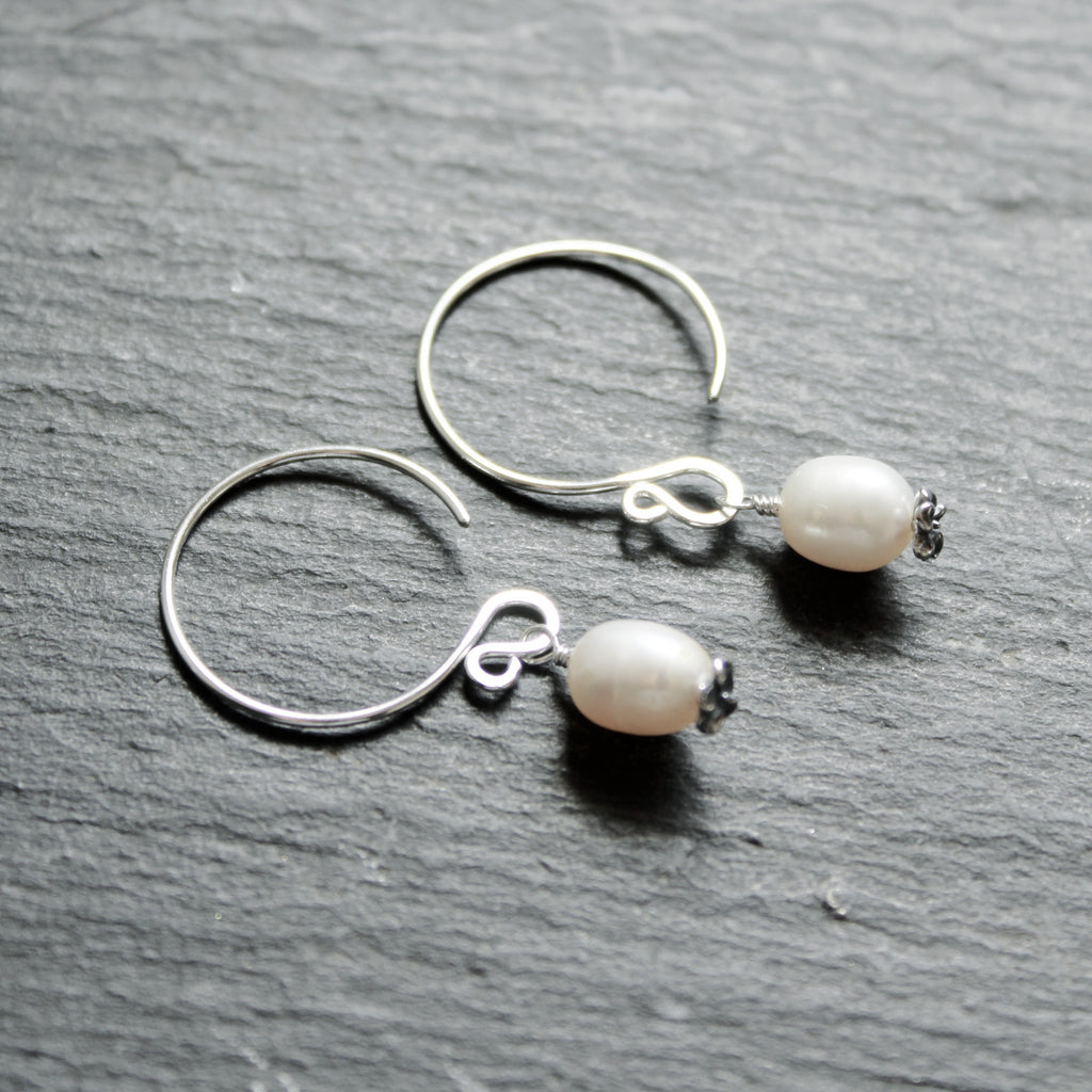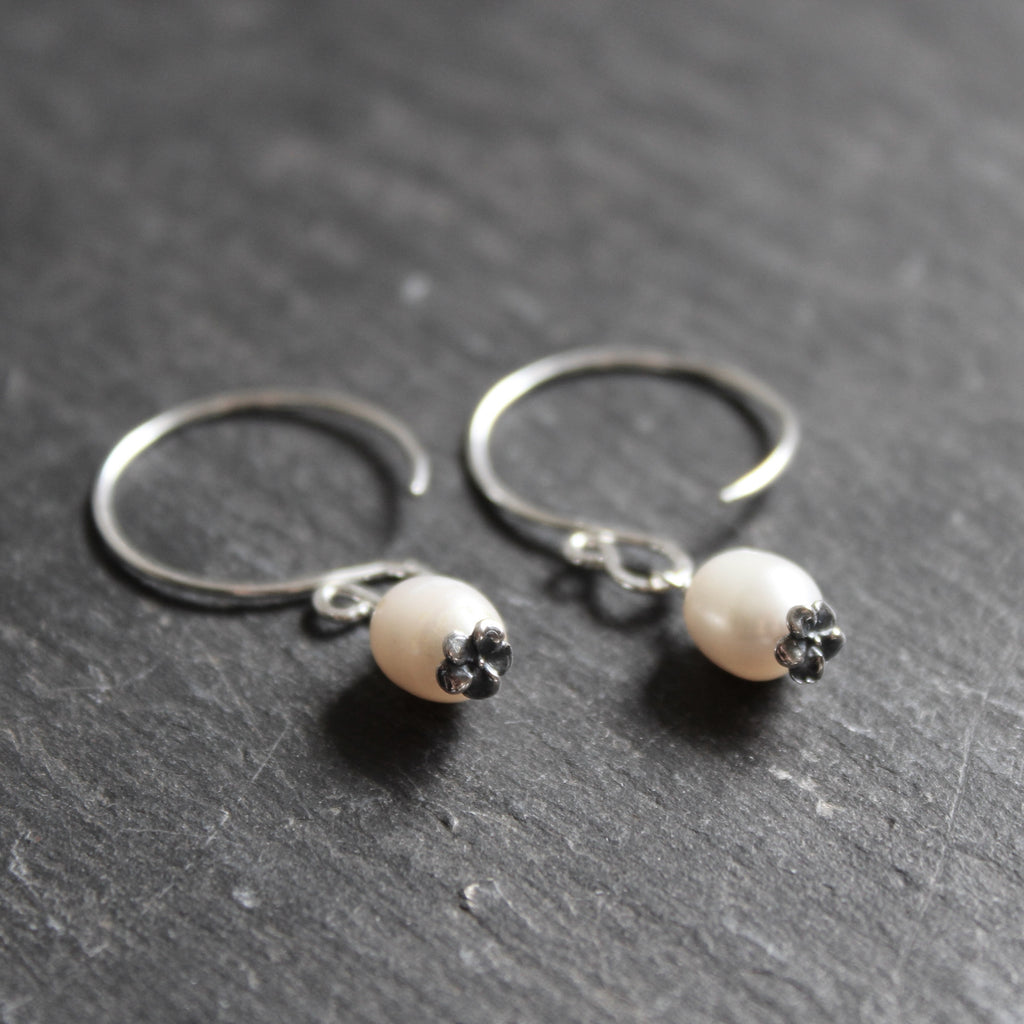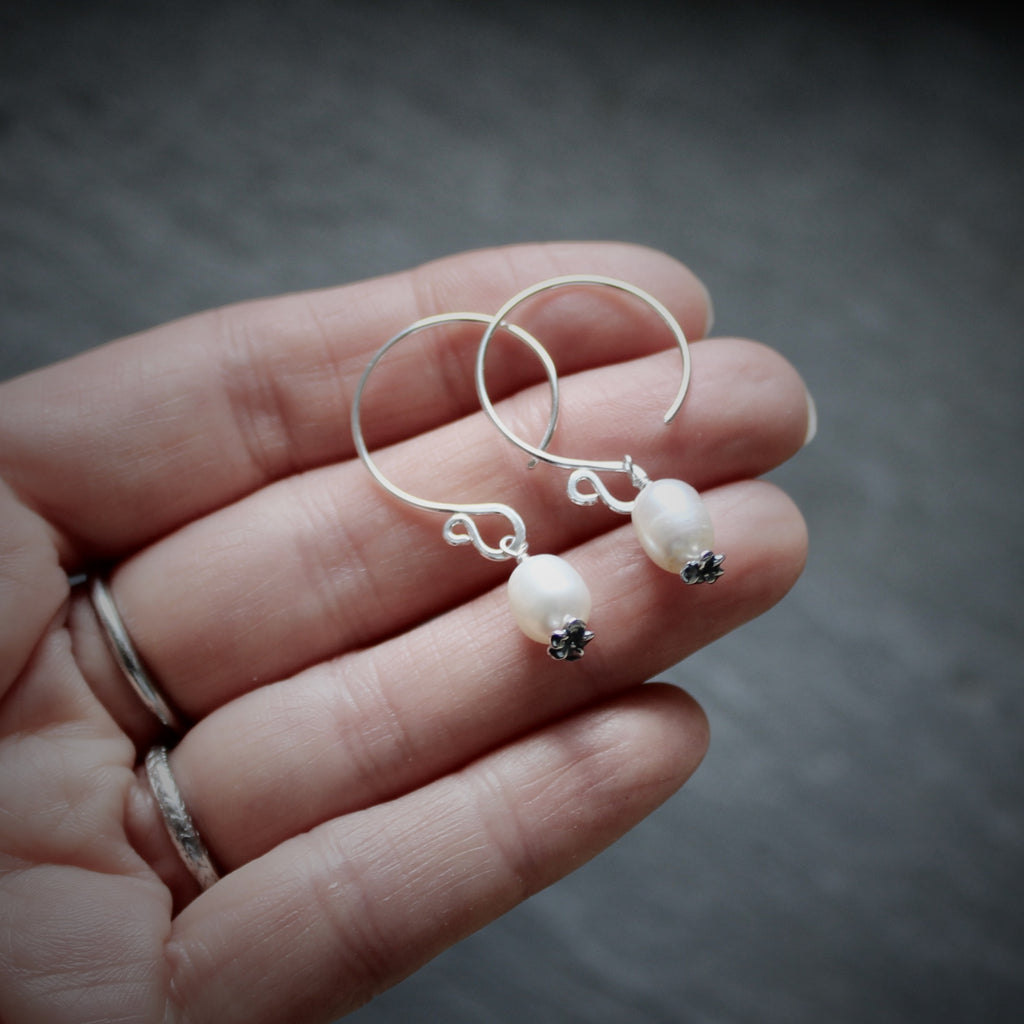 Delicate everyday earrings with up-cycled freshwater pearls--repurposed from a vintage necklace.