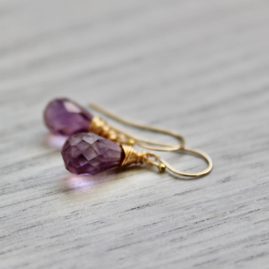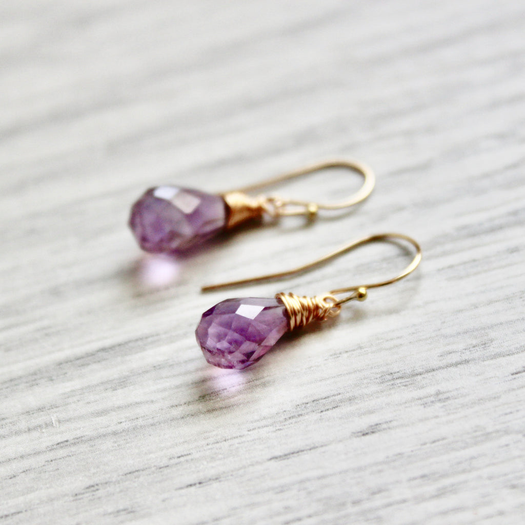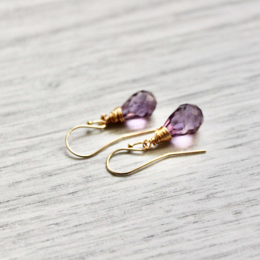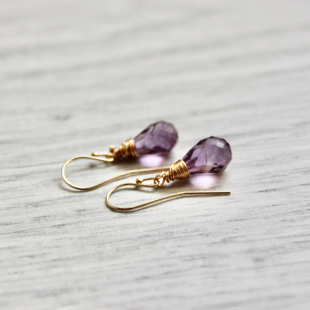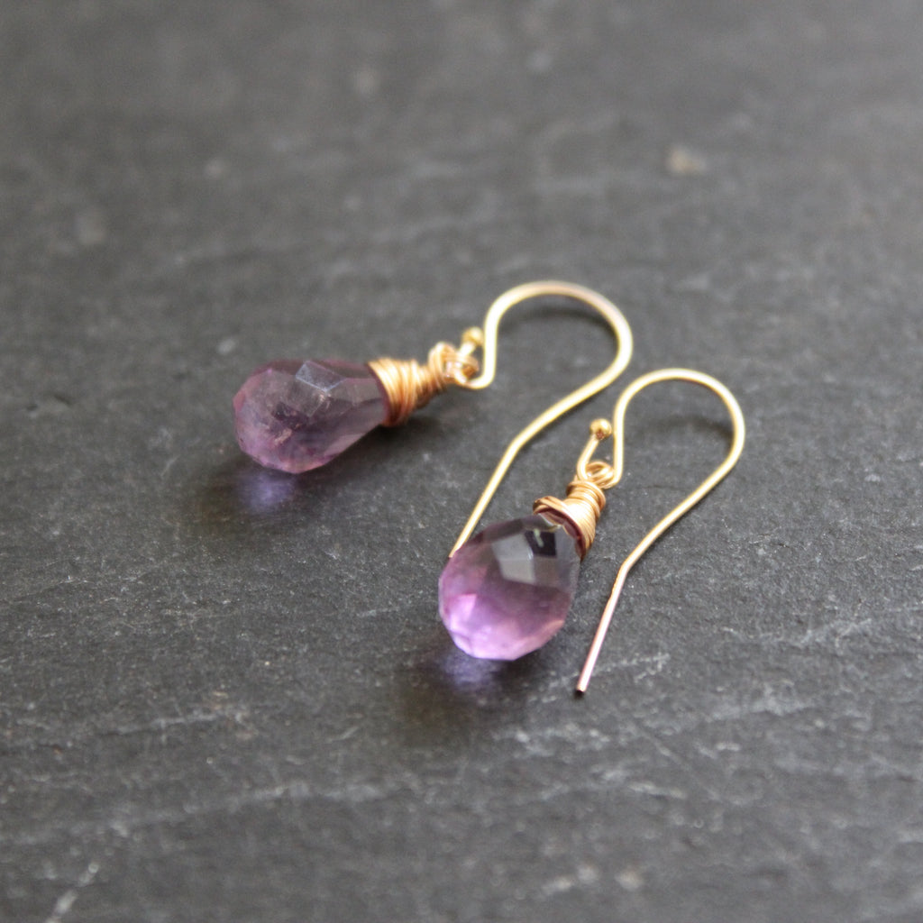 Purple Rain Amethyst Drops with Gold Filled Ear Wires