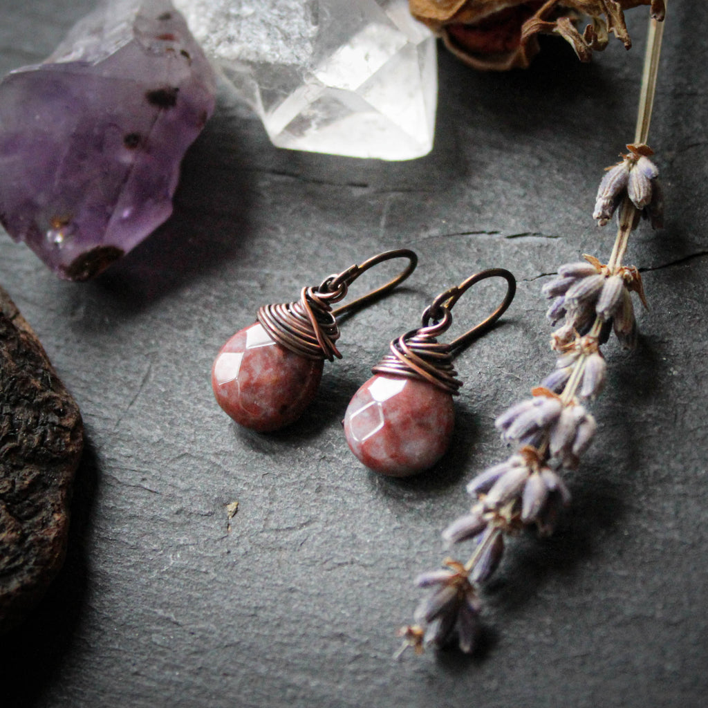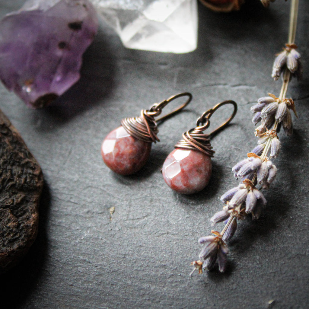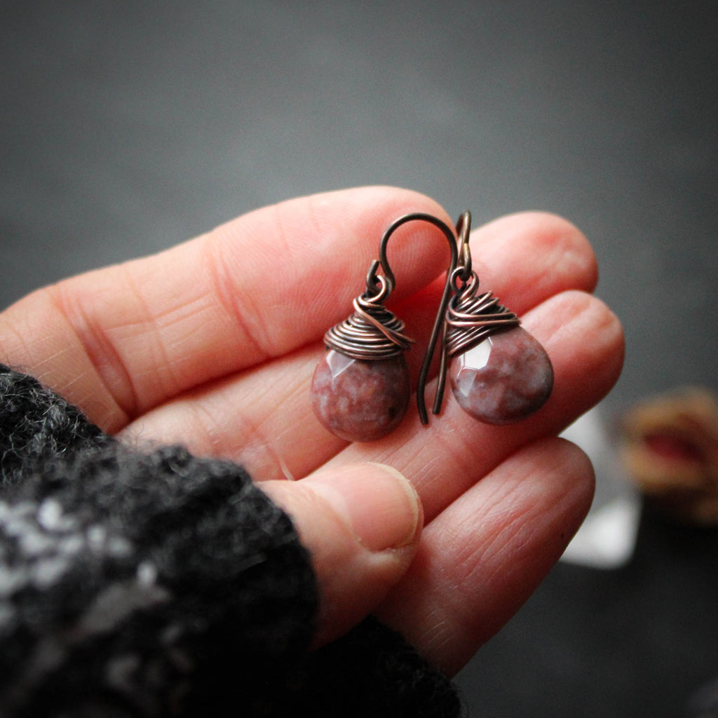 Rustic Mauve Agate Drop Earrings. Hypoallergenic.