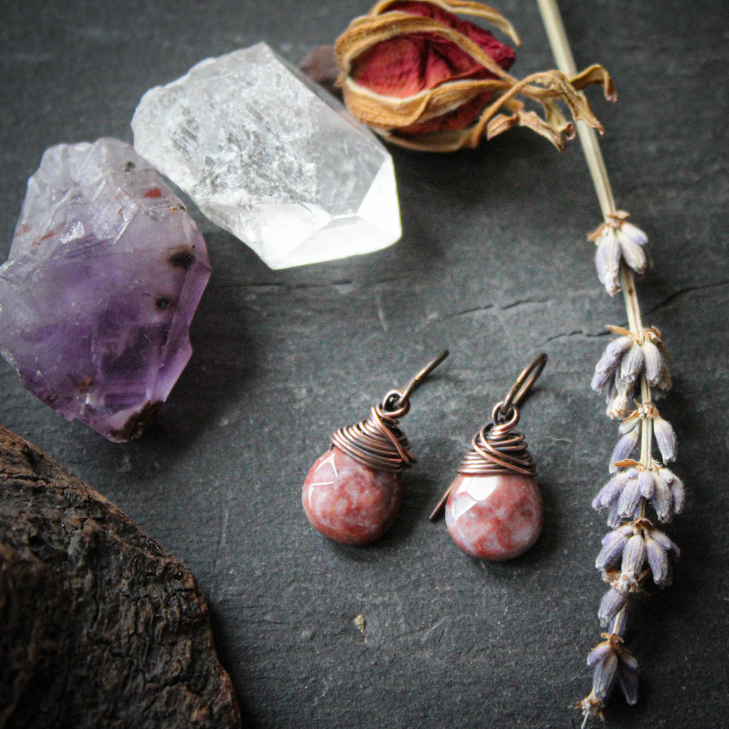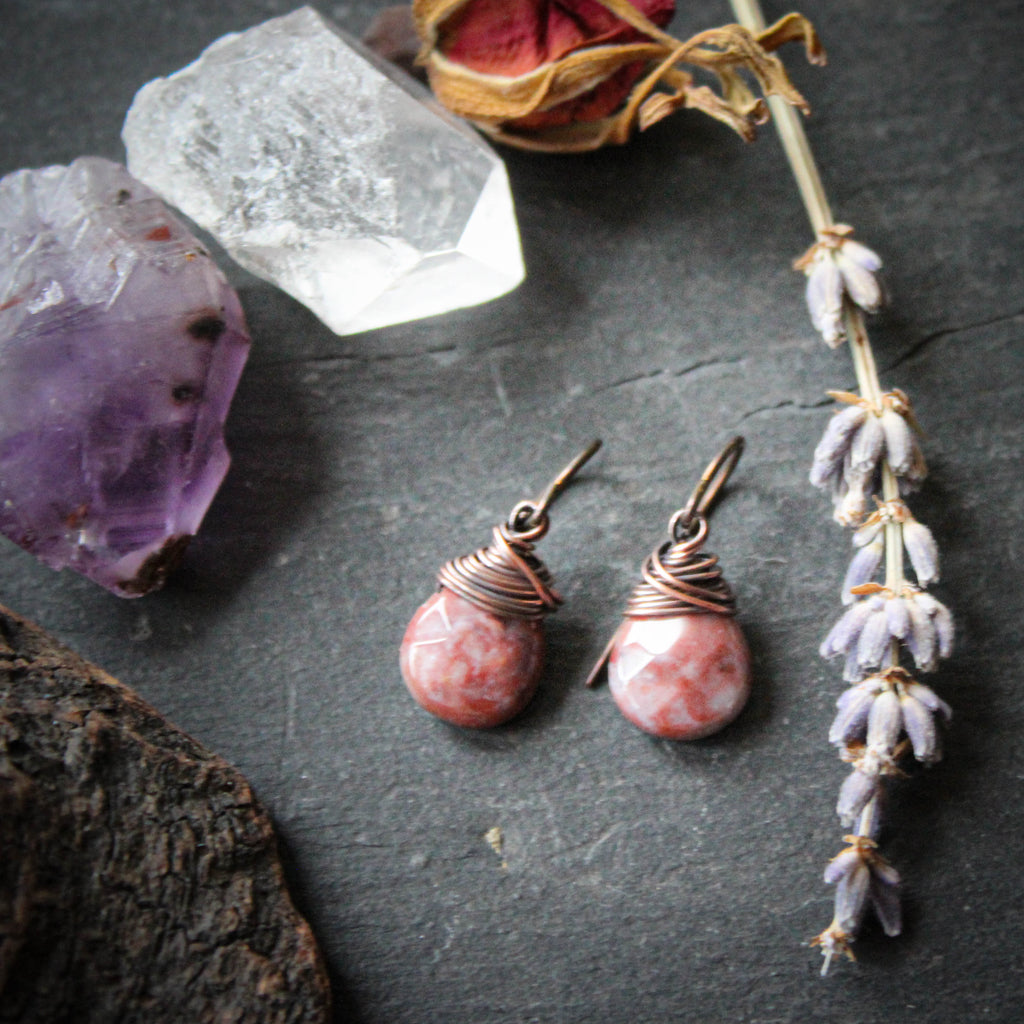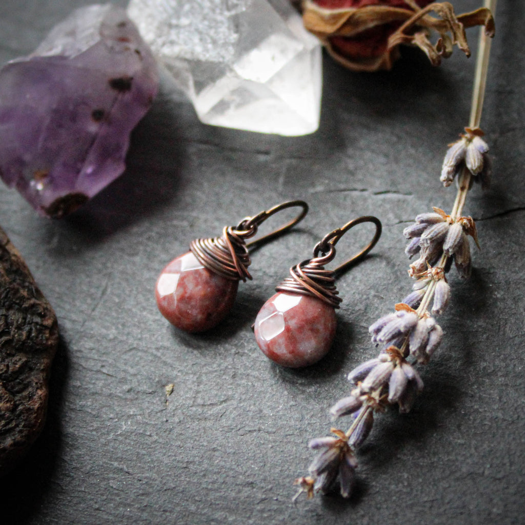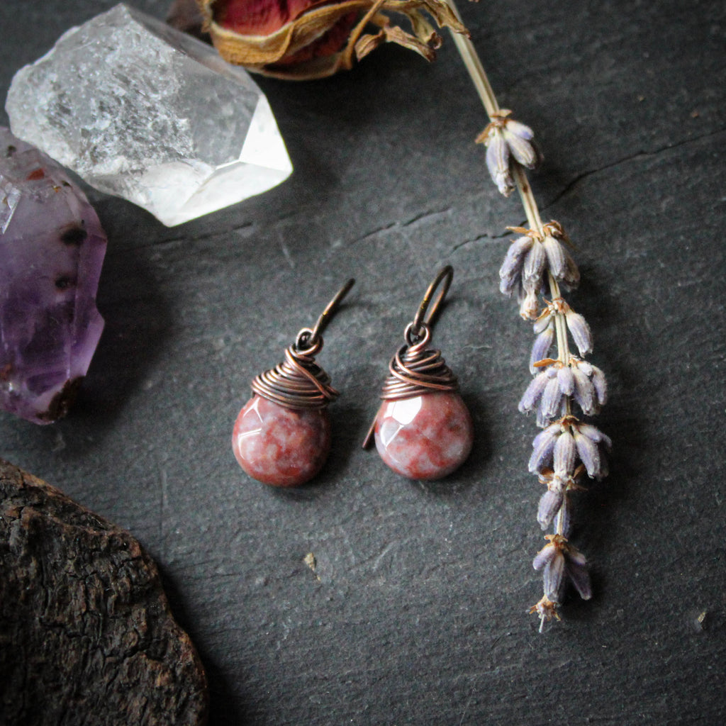 Rustic Mauve Agate Drop Earrings. Hypoallergenic.