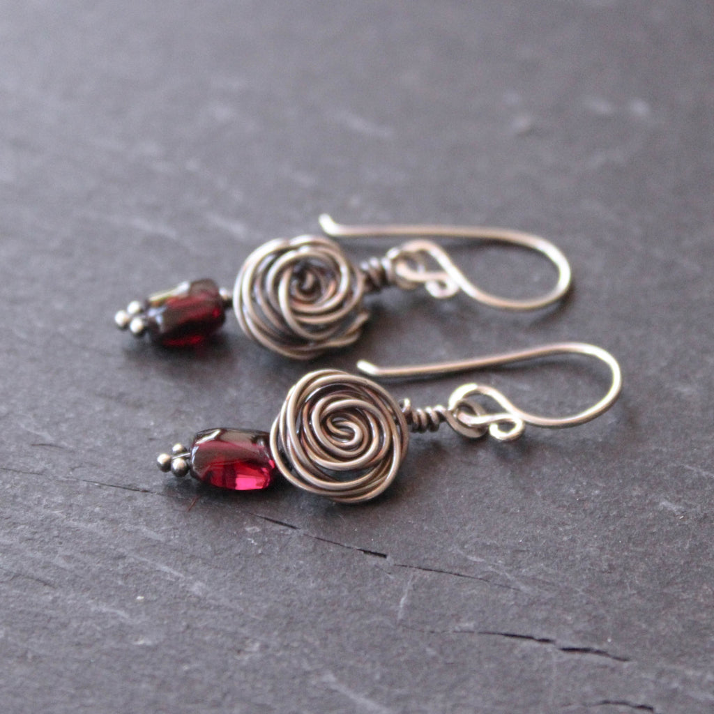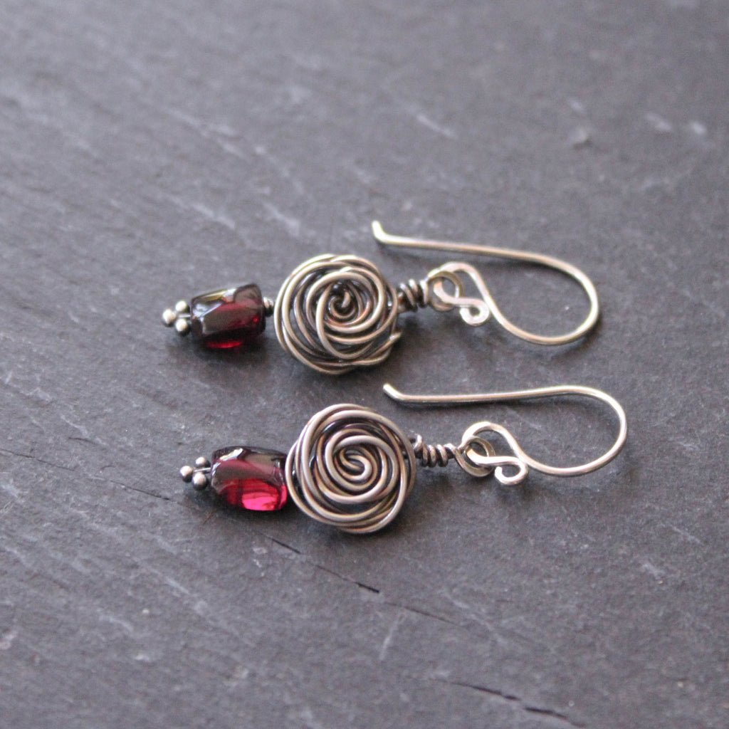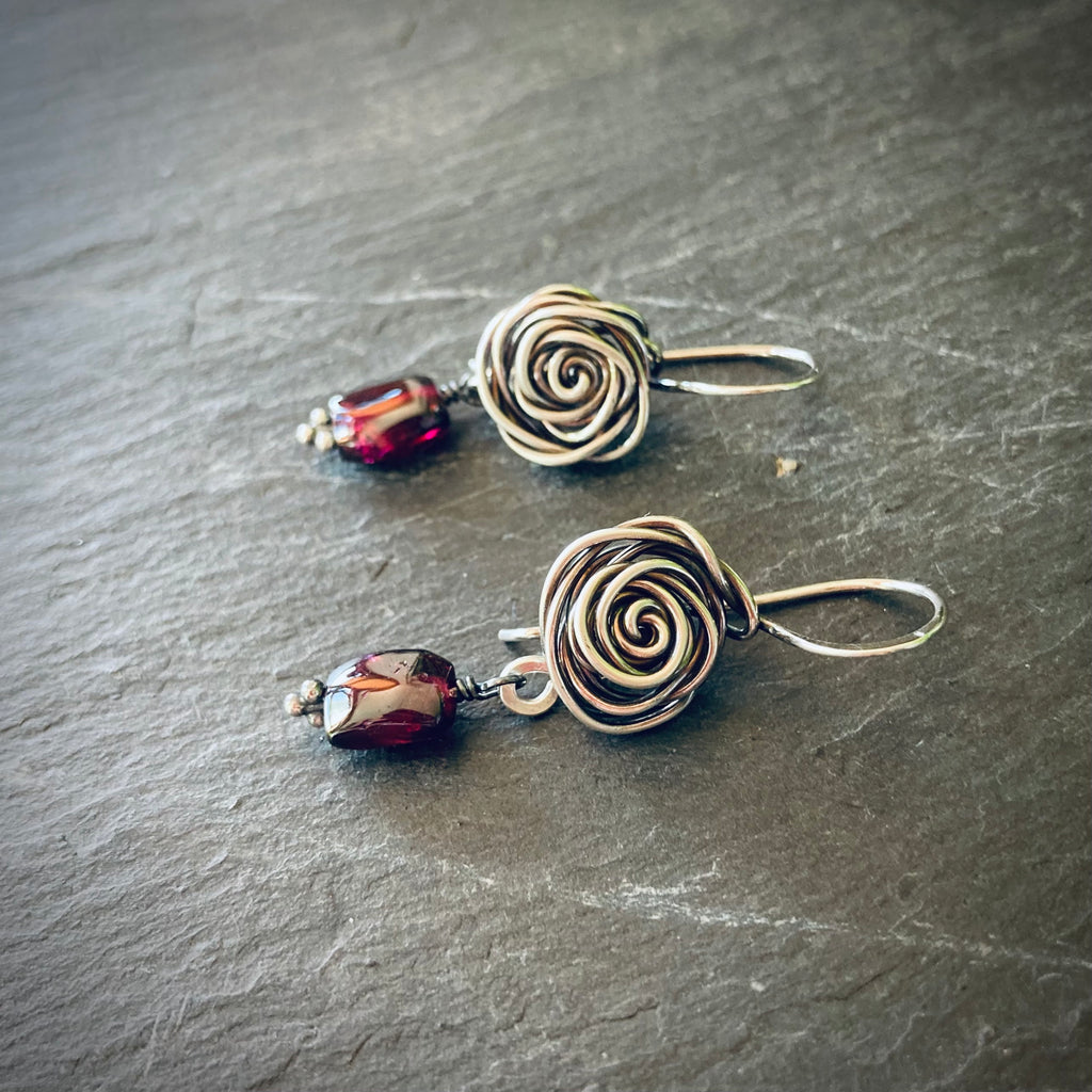 - I've paired the silver roses with deep red garnets