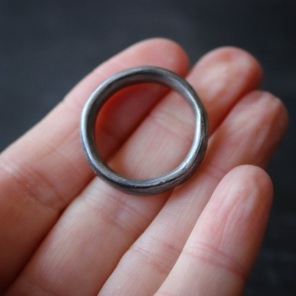 A comfortably solid piece-- it will work well for a man or woman and could even be a beautifully rustic promise ring.