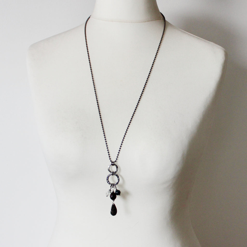 • Pendant hangs from a blackened steel ball chain, 30" or 76cm long.