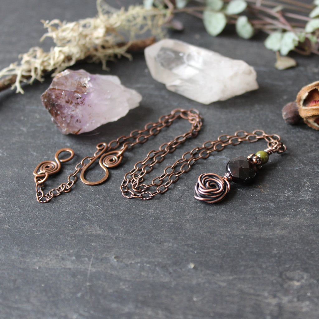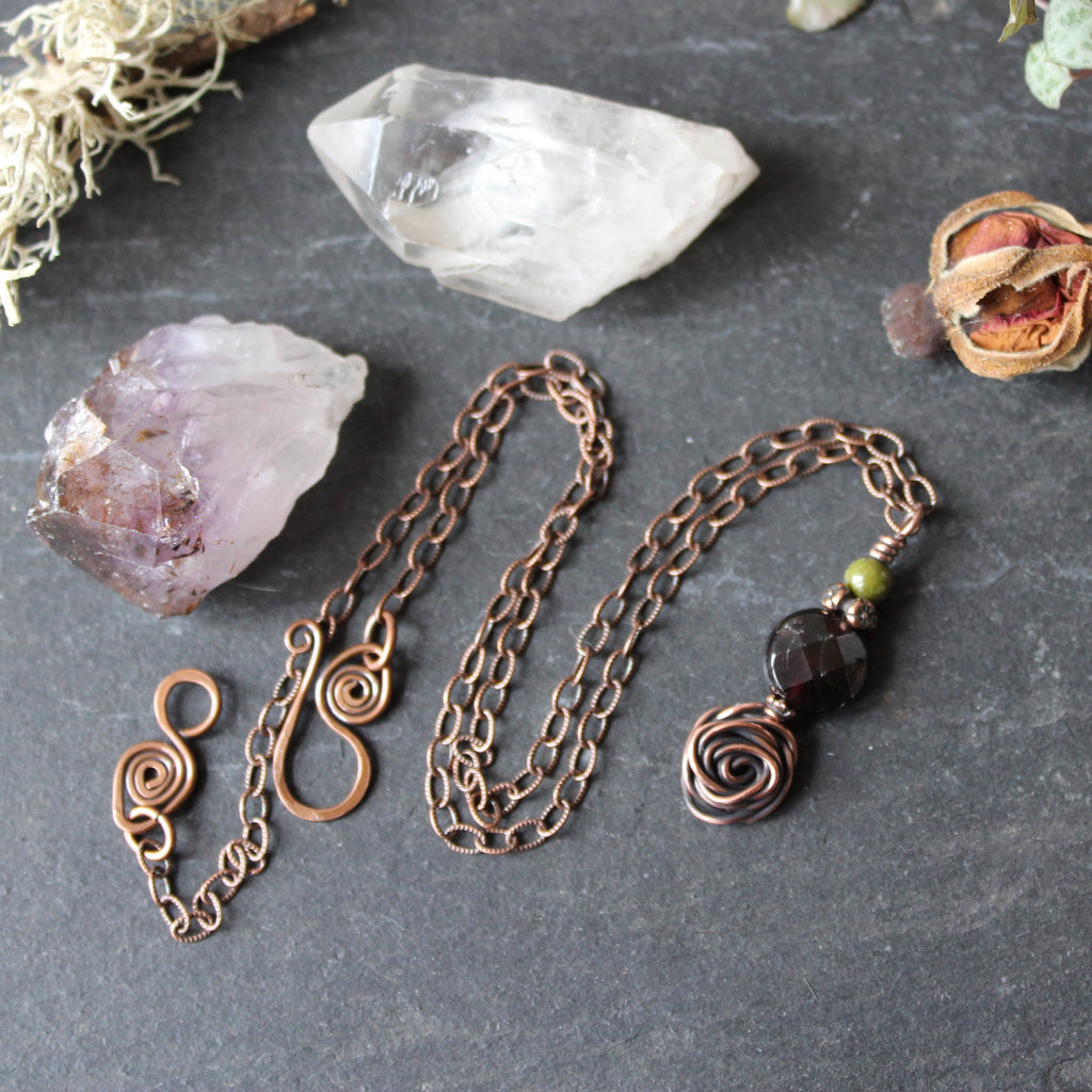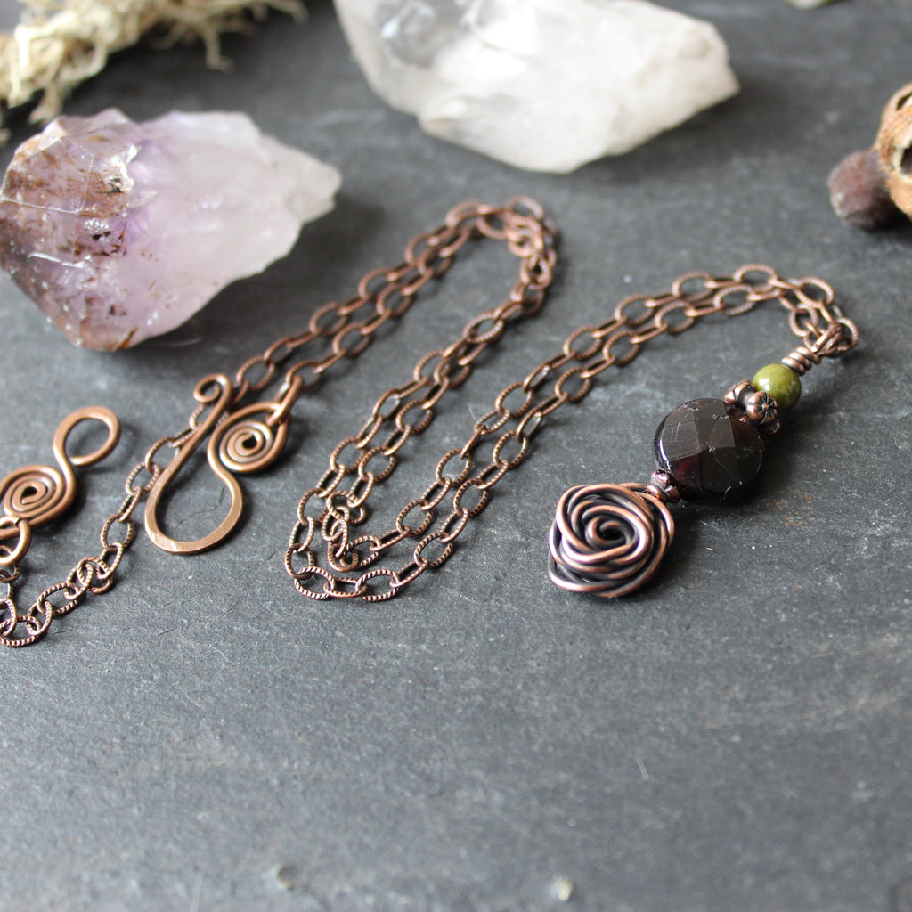 Glasgow Rose Cantrip Pendant Necklace with Garnet in Copper