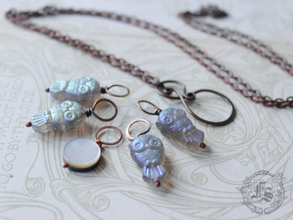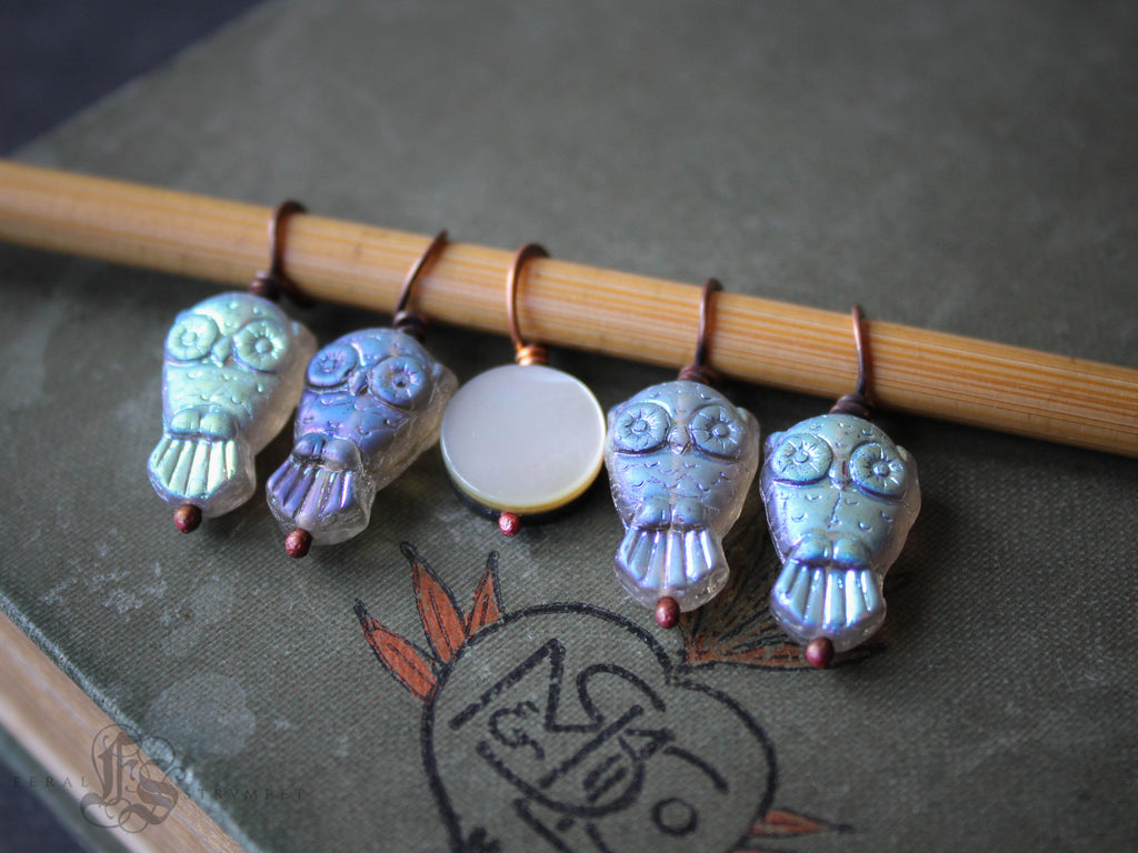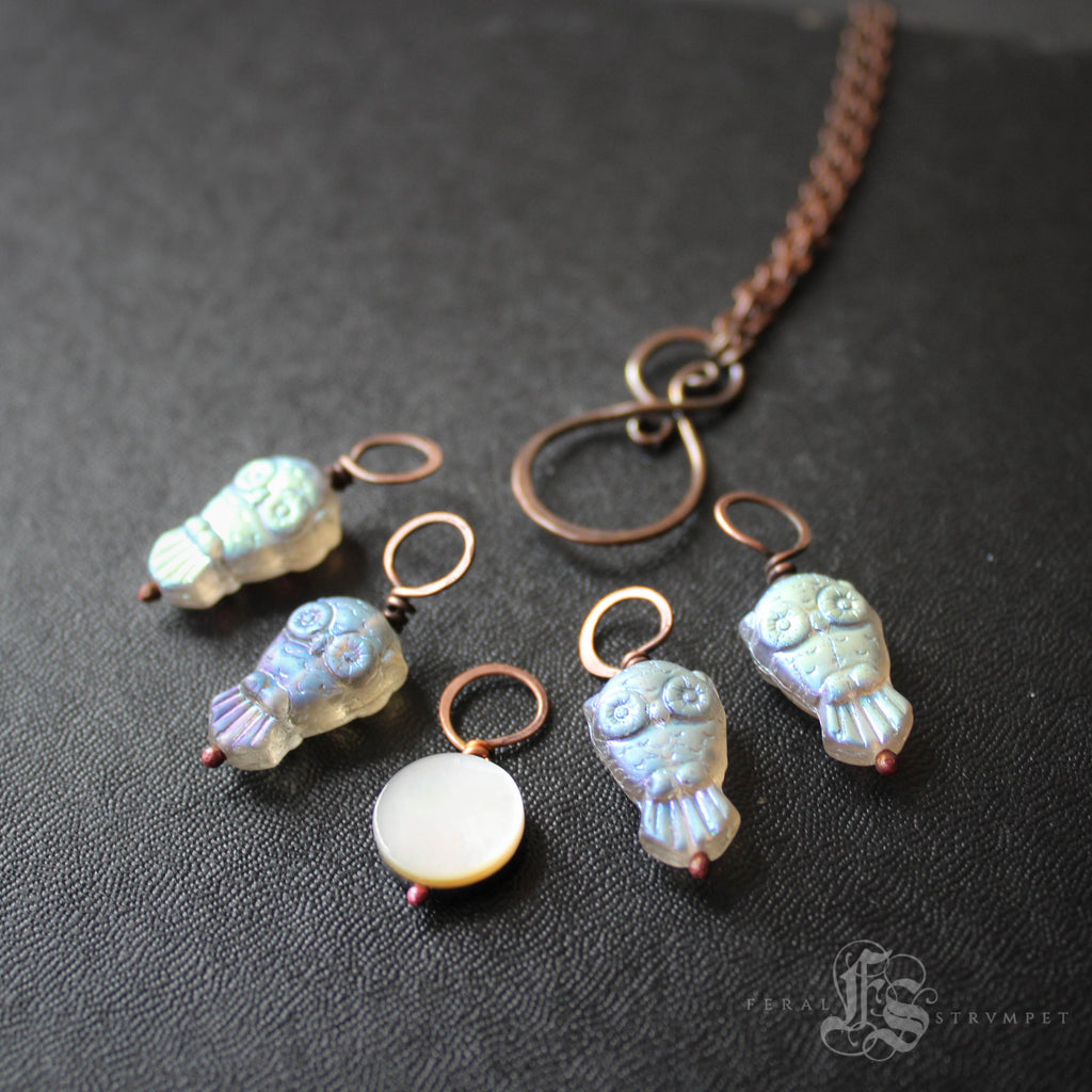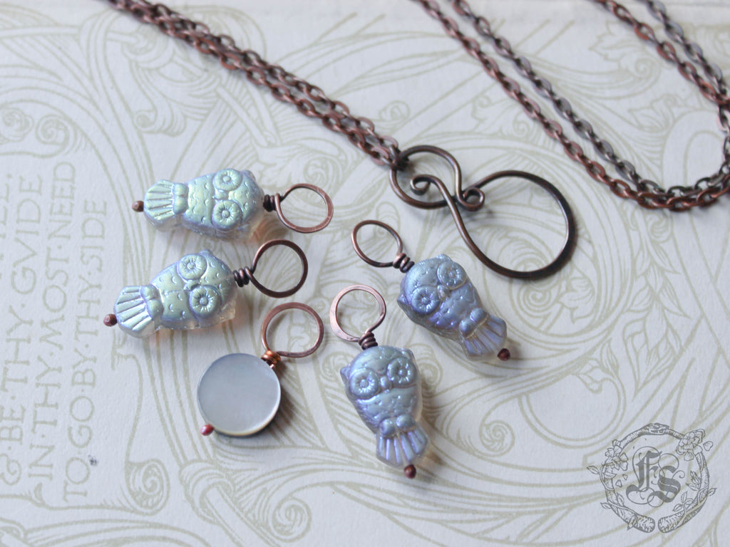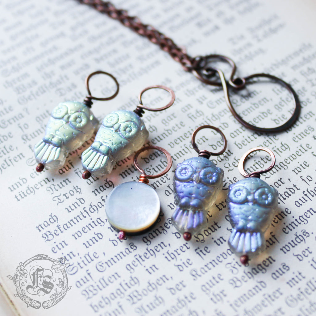 Owl and Moon Stitch Marker Set Necklace. A Parliament of Owls.