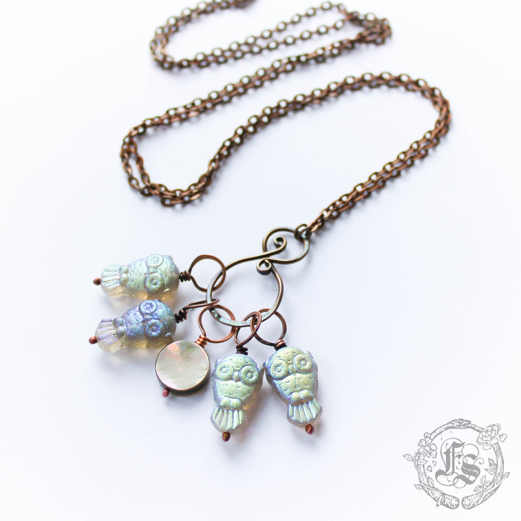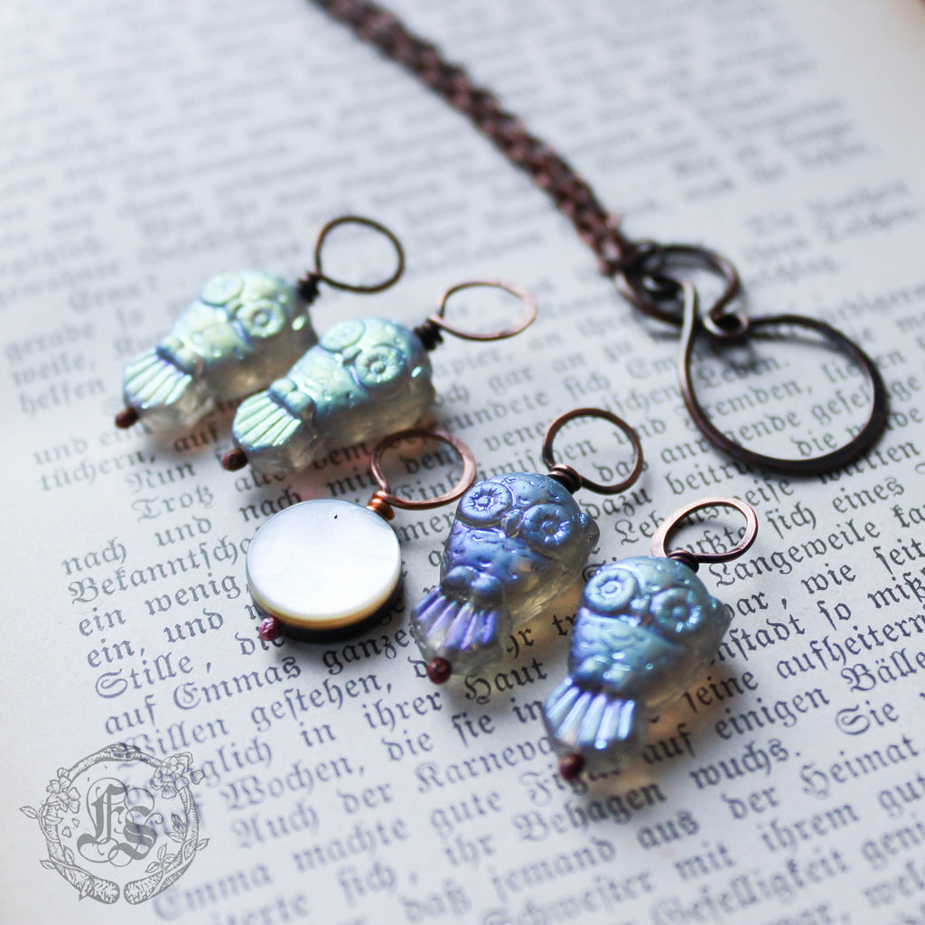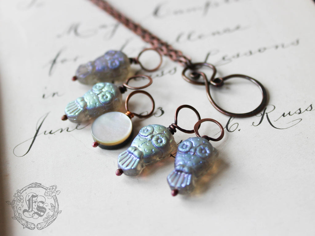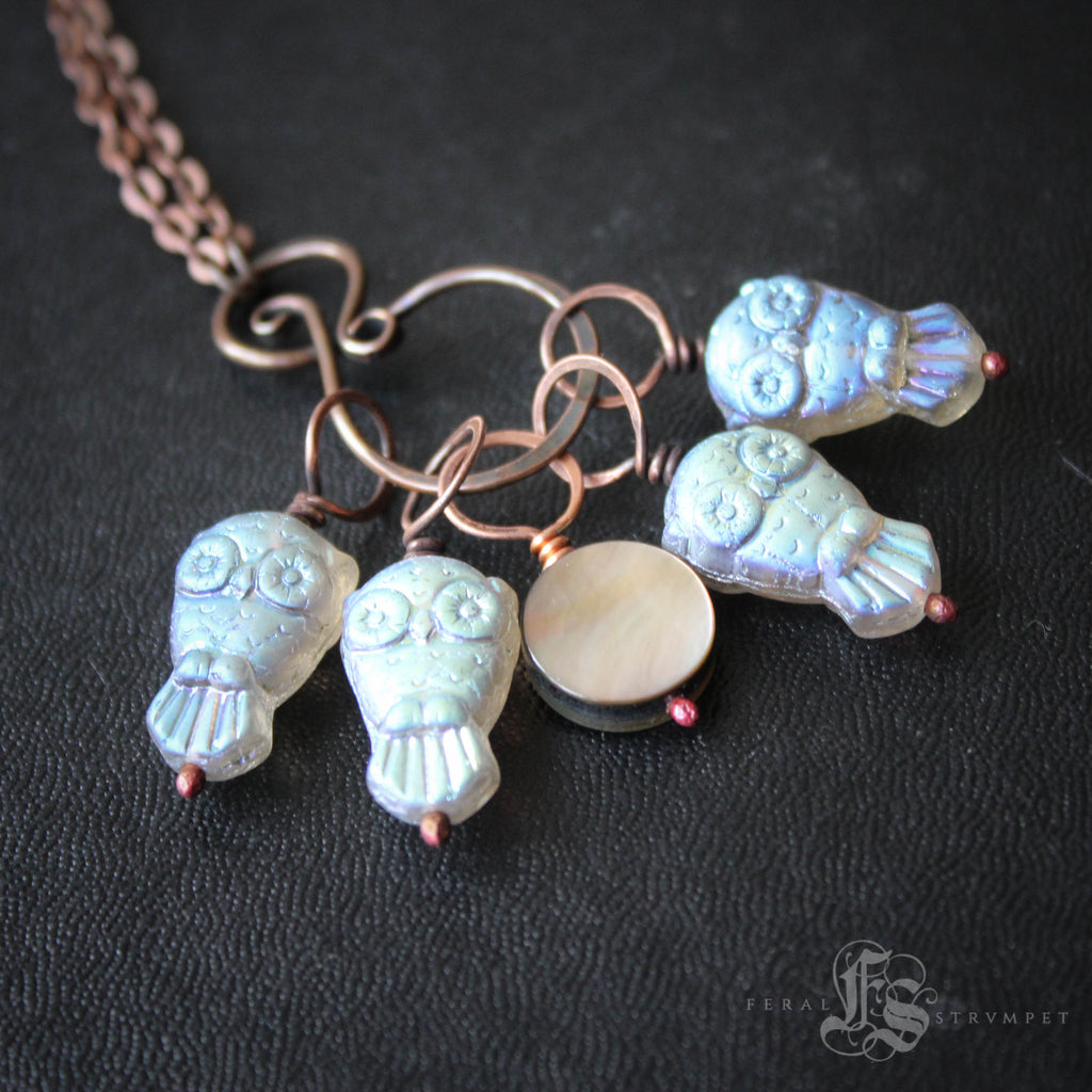 Owl and Moon Stitch Marker Set Necklace. A Parliament of Owls.