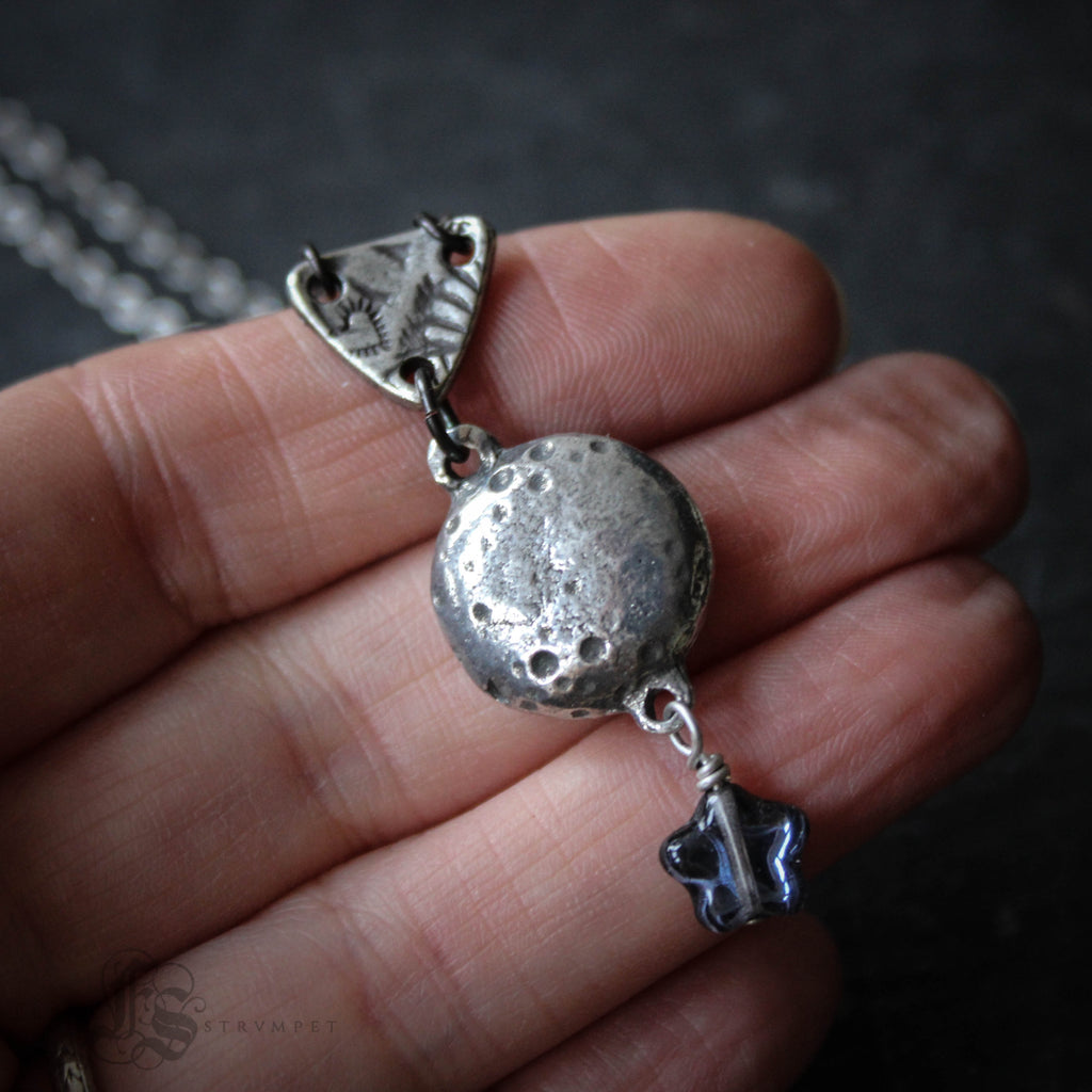 - A Czech glass star dangles from the moon bead