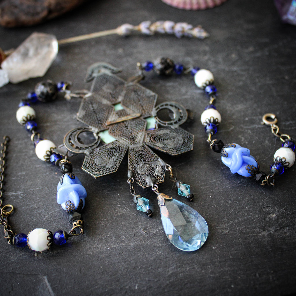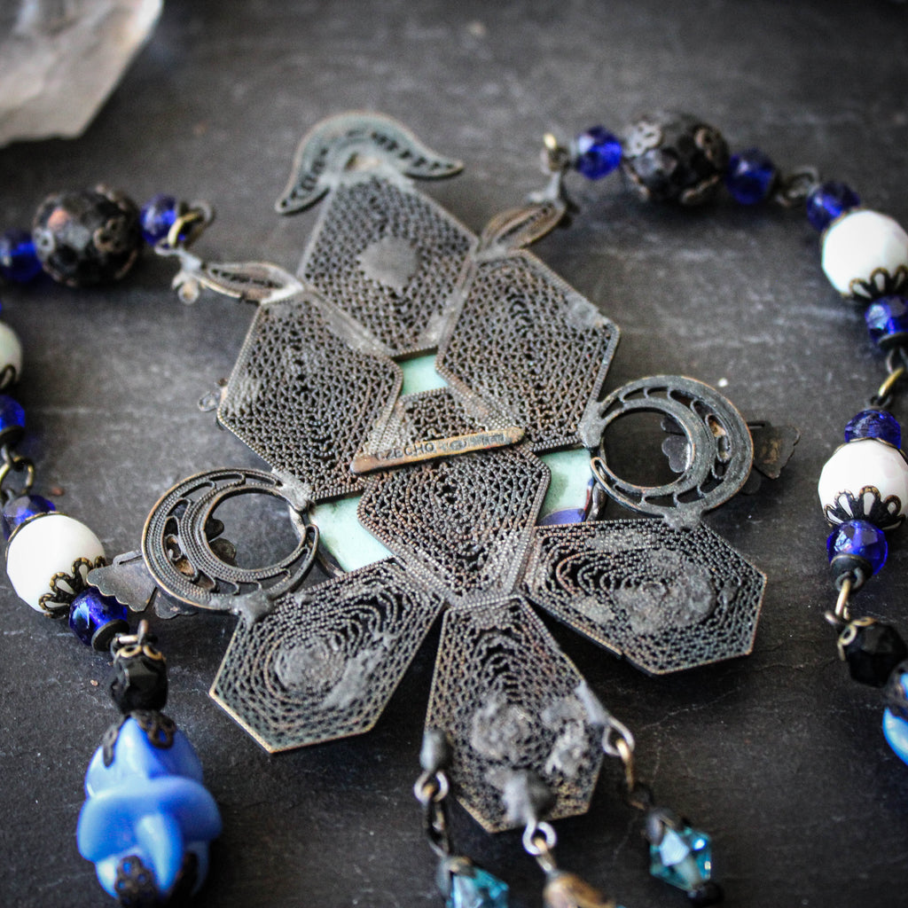 Flora. Antique Bohemian Czech Statement Necklace.