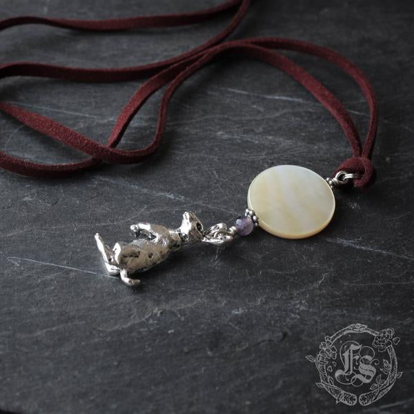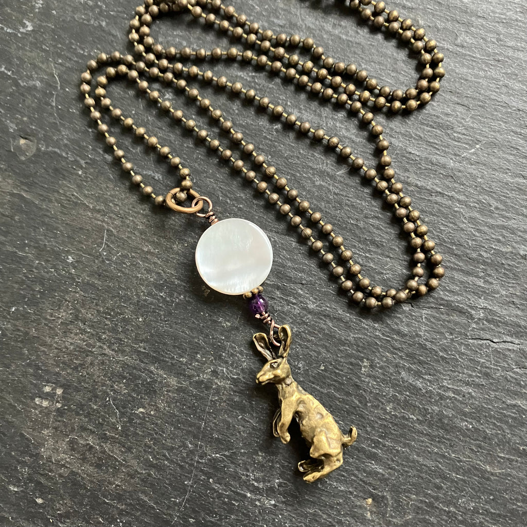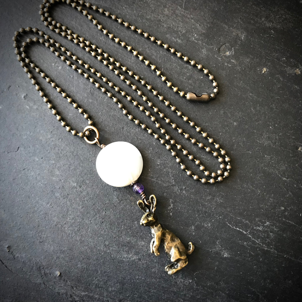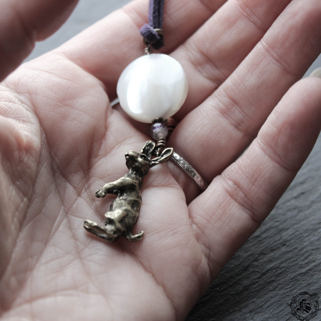 We sell a silver-coloured version of this hare pendant (see last photo) available here.