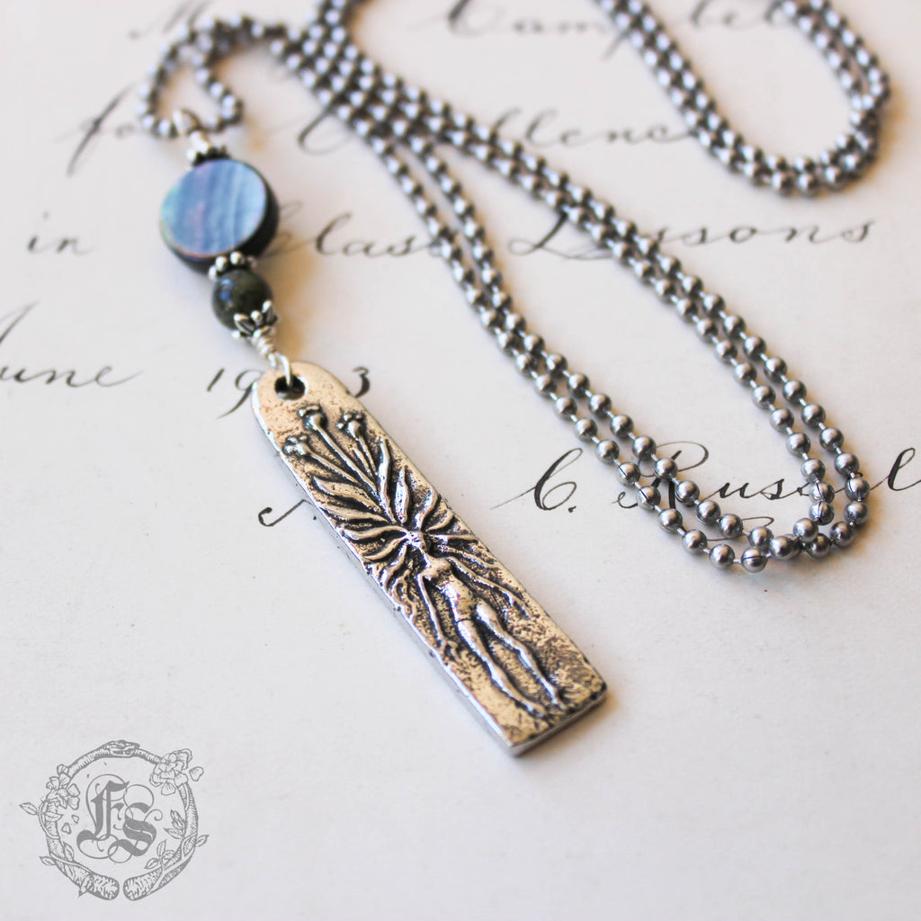 • On the reverse of the pendant is a heart-plant-sun sigil