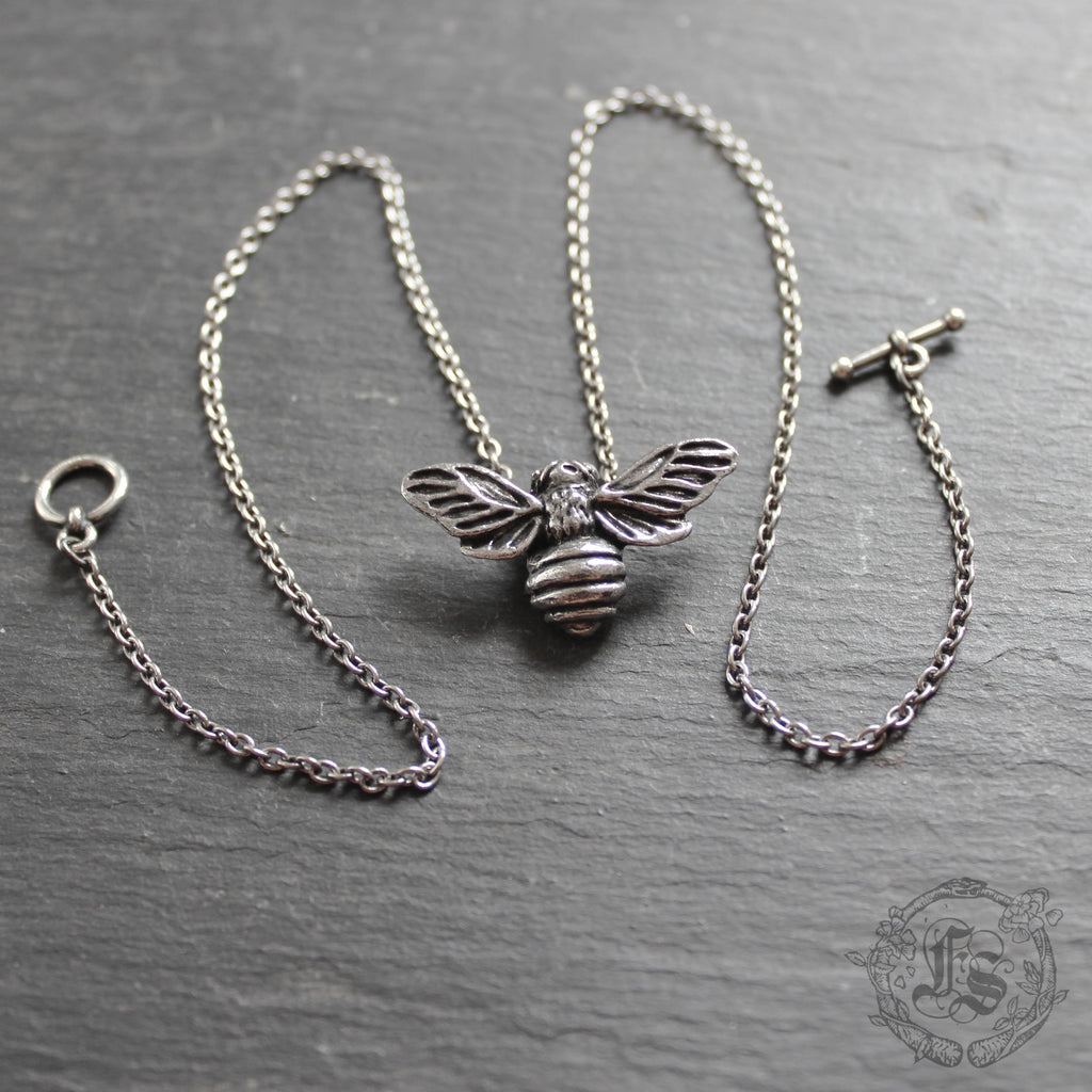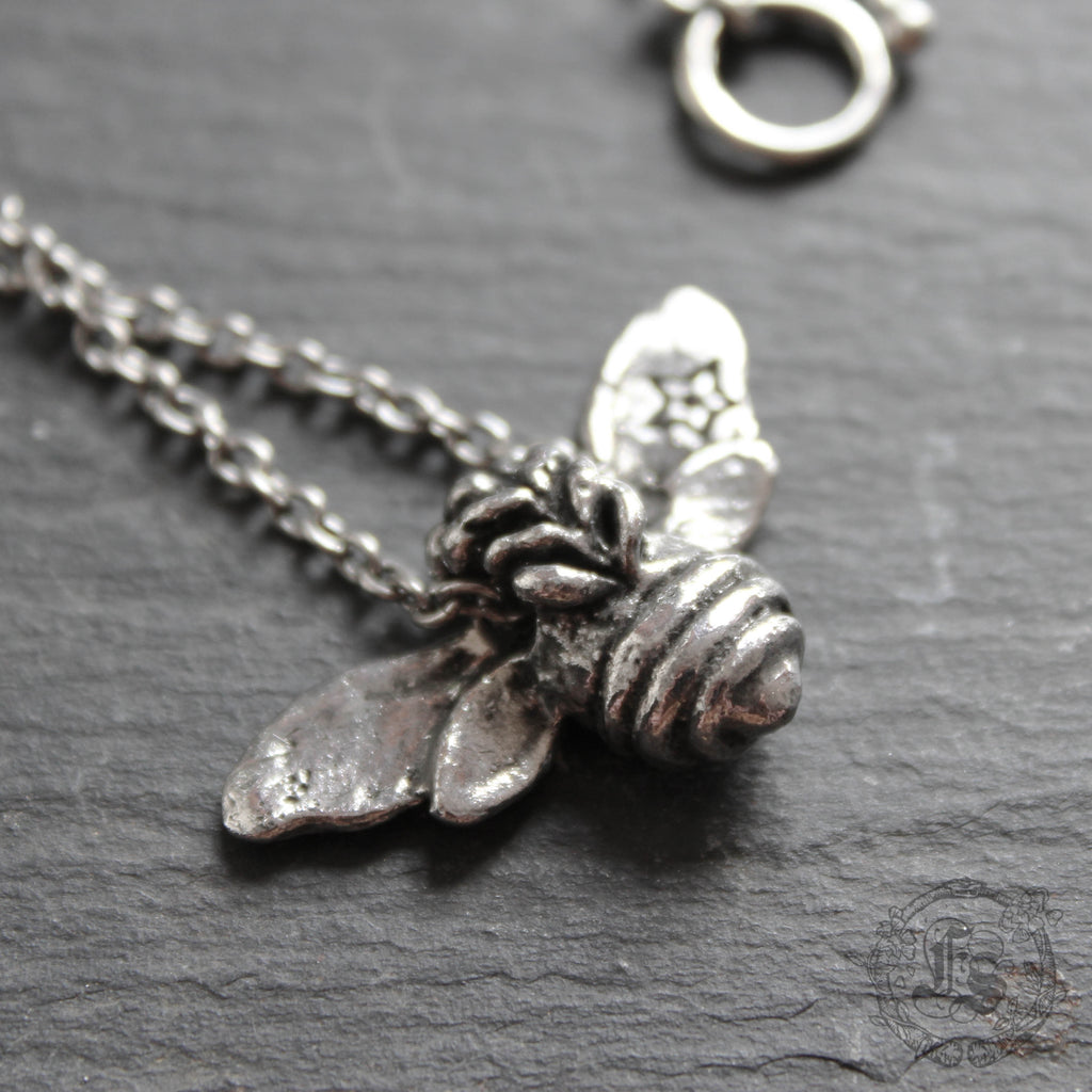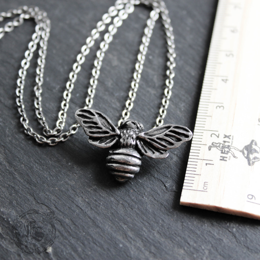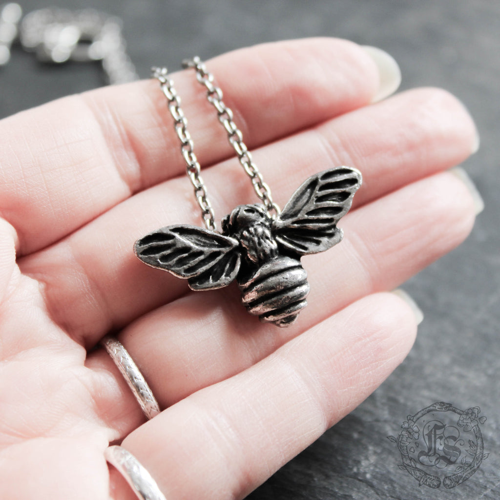 A beautifully substantial bee pendant hand cast in nickel-free and lead-free pewter.