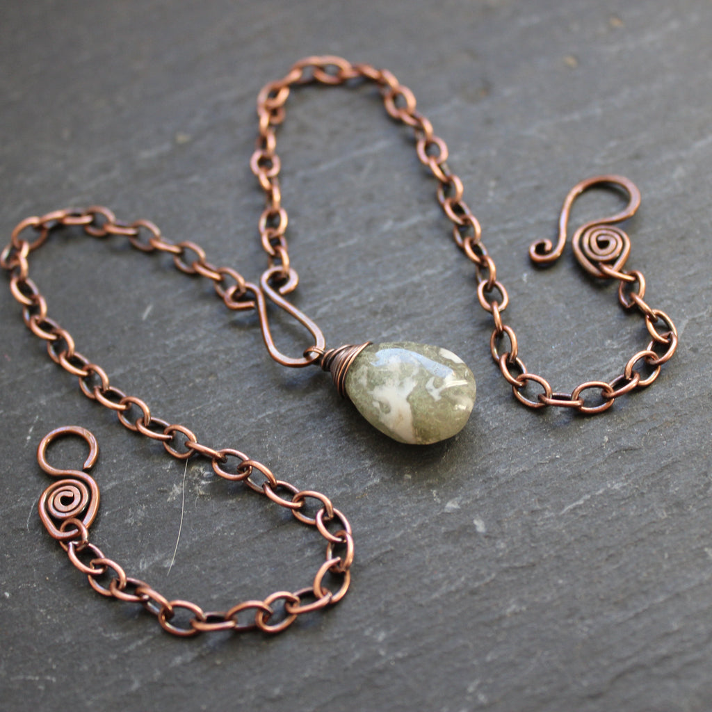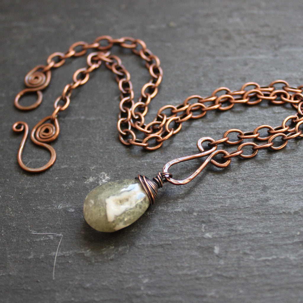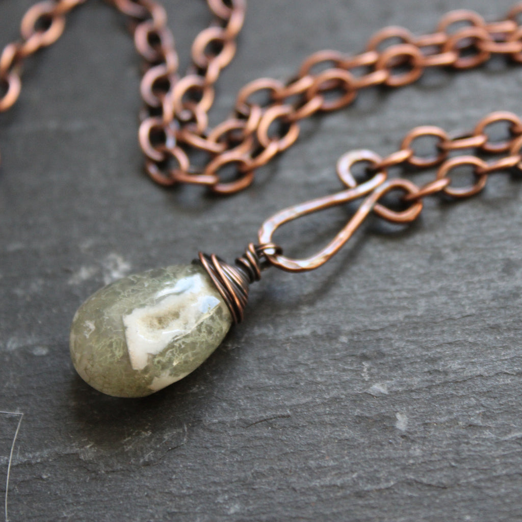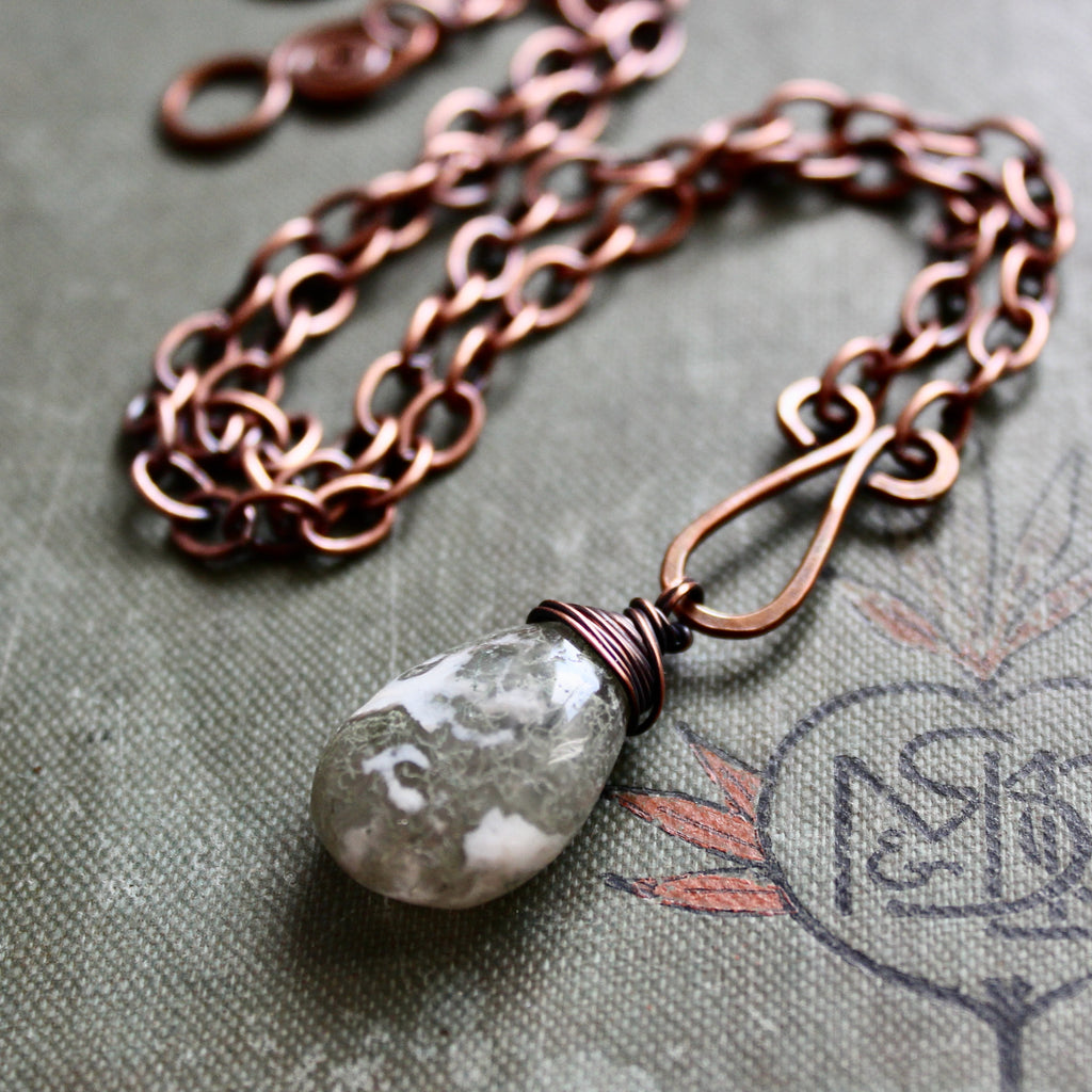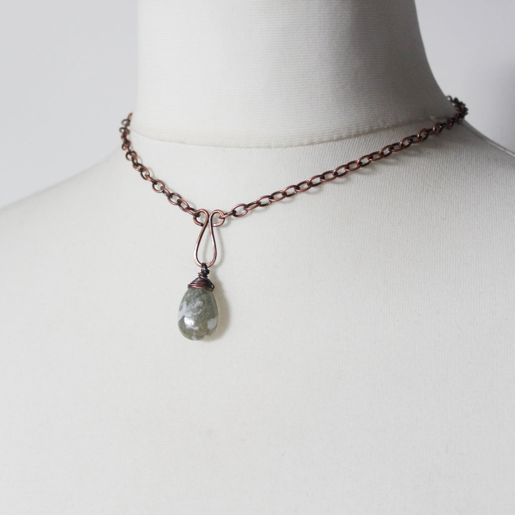 Spring Thaw. Moss Agate Briolette Necklace in Copper.