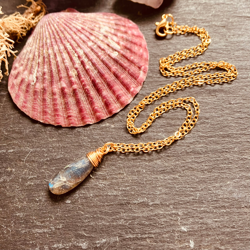 Summer Rain Labradorite Pendant Necklace in Gold Plate